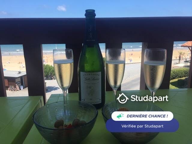 rue des Plaqueminiers, 64700 Hendaye, 2ème (et dernier) étage (sans ascenseur), dans villa basque, type 3, face mer. 3 pièces principales avec portes-fenêtres donnant sur un grand balcon filant avec meubles de jardin et vue panoramique sur la mer (à 20 m) et l’Espagne. 1 salon-salle à manger avec un canapé 3 places et un canapé-lit (140), 2 chambres avec 1 lit 140x190 dans l’une (ch à droite) et 3 lits 90x190, dont 2 superposés dans l’autre (ch à gauche), 1 cuisine, 1 salle d’eau, 1 parking dans la cour (n° 7, au milieu des 3 places en épis), Possibilité 2ème parking. Équipements : wifi Bbox (Fibre), télévision, machine à laver le linge, réfrigérateur, partie congélateur, four, four à micro-ondes, cafetière (italienne moka et filtre), grille-pain, blender, hachoir, rice-cooker, ... (pas de machine à laver la vaisselle). Updated on 02/10/202...