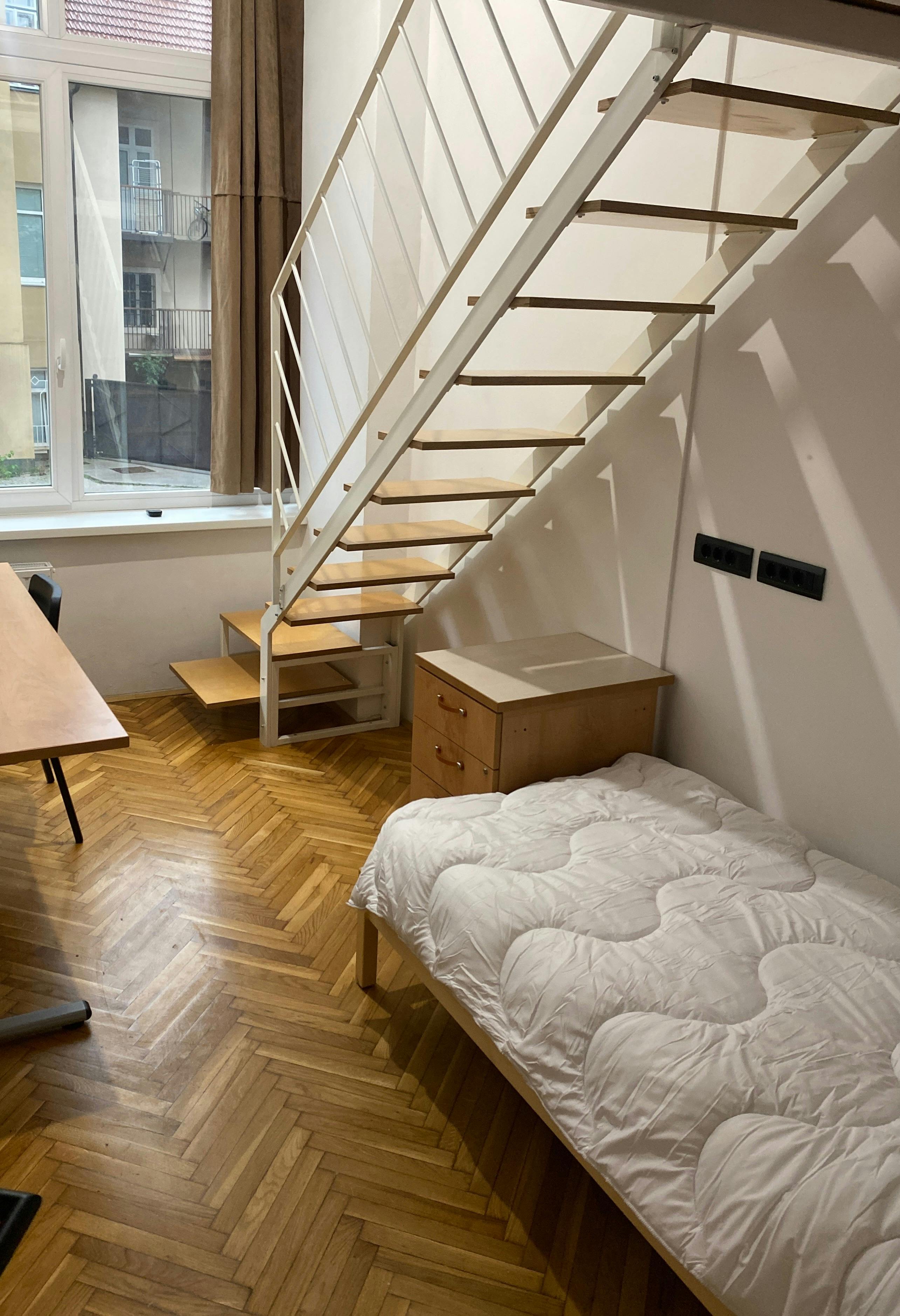Studeren, werken, contacten leggen en je thuis voelen.Ontdek meer studentenwoningen in LjubljanaA bed in a SHARED FEMALE DUPLEX DOUBLE ROOM with shared bathroom & kitchen. 🏡 The new private student home with a variety of rooms (doubles, singles, private bathroom rooms) on Poljanska cesta is located in a beautiful location in the center of Ljubljana. Suitable for both domestic and international students (many Erasmus students stayed here over the years) or young professionals. Each room is furnished; it has a refrigerator, a new mattress, and wi-fi. We have organized cleaning of common areas (kitchen, living room with library, laundry room with 2 washing machines and a dryer and bathrooms). 📍Location: The building is located in the heart of Ljubljana, with all amenities such as supermarkets, restaurants and a bakery on your doorstep. The Faculty of Law and the Faculty of Medicine are also in the immediate vicinity. In front of the building there is a bus stop for lines 2, 13, 20. The Community: We're a fun, respectful, and international household - a welcoming space to connect, make lasting friends & memories, and enjoy everything the city of Ljubljana has to offer. From food and music festivals to sports events, local fairs, bars, and clubs, there's always something happening. Join us and make the most of your semester abroad! �...
