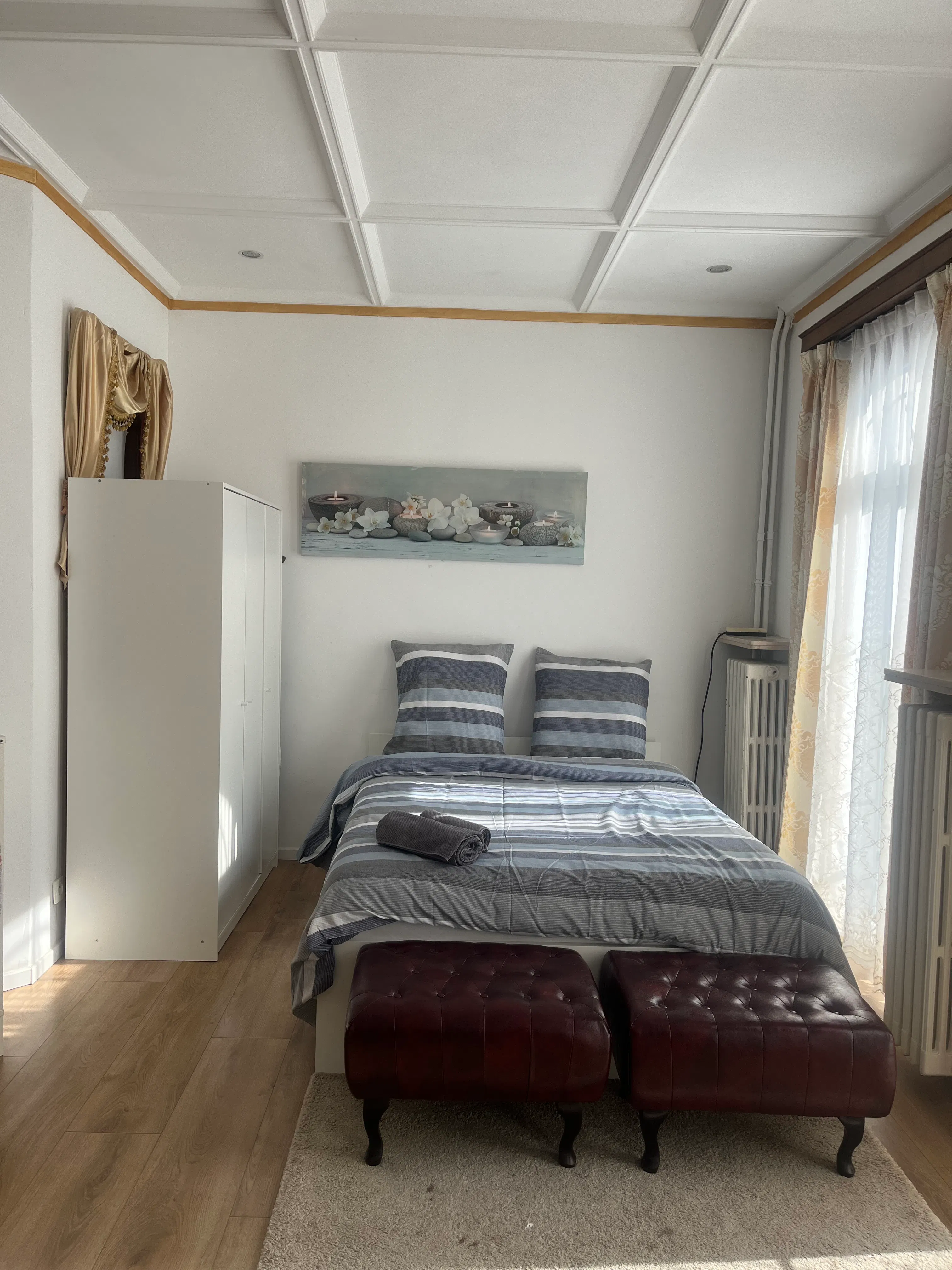 Possibilité 2persones maximum The apartment accommodates a maximum of 2 people (+€100/month fees for the second person) 👫. It is near the center and close to the European district 🏙️. The European Head(hidden) is 20 minutes away by bus 65 , 29 There are lots of shops nearby 🛍️. The apartment is cozy and very practical! 🏡 Apartment Features: Private studio on the 1rd floor 🏢 Private kitchen with cutlery, glasses, and bowls provided 🍽️ Oven, refrigerator, and freezer ❄️ Private bathroom with towels provided once 🚿 Access to washing machine and dryer for €30 per month 🧺 WiFi available 🌐 🚉 Public Transport: At central of Evere (4 minutes) Easy access to public transport: Bus STIB 45 ( 15 minutes from the center shopping and metro Roodebeek many of destinations ) 🚌 Bus STIB 21 (Zaventem airport to Mars ) Bus STIB 65 ( Gare central and centre of Brussels city Bourse ...métro train 🚆 🚂 🚌 Train STIB 55 🚌 Roger centre city2 Bus DE LIJN R26-R27 (from Zaventem airport the center. Gare du Nord) 🚌 Bus DE LIJN N62 🚌 🧾 Fees: Final cleaning fees are fixed at €50🧹. Rent of €80 + charges of €150(Gas, water, electricity, WiFi) 💶. Next of the apartment you will find Colrijlt supermarket + ALDI + Lidl + Carrefour + Delhaize ( Bus 45 -21)Around the Neighborhood also have the city center and Botanique park where you can visit the and sports 🌳. Swimming pool + sports centre Belgium offers numerous museums, including the Museum of Brussels City and the famous Chocolate Museum 🍫. Everyone is welcome to the studio: students, couples, workers, or those who love adventure 🌍. We only accept long-term stays 📅. It will suit everyone's taste! �...