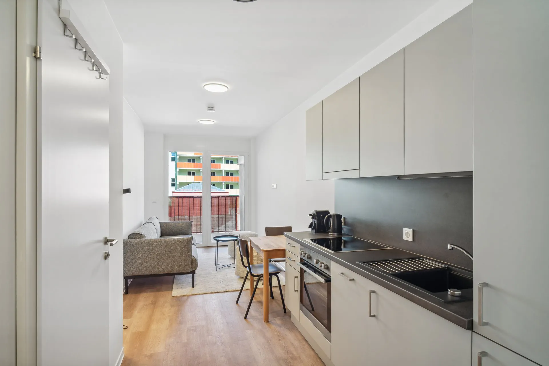 APARTMENT Each flat has a fully equipped modern kitchen that has everything from pans to a coffee machine, dishwasher, and oven. All apartments have spacious bathrooms with washing and drying machine. The apartments are also provided with energy-efficient floor-heating system that can be controlled individually for your comfort. PROPERTY Surrounded by a green courtyard, the building creates a safe secluded space for you to find peace in the midst of Graz city life. The property is purposefully built to be an ideal location for you to enjoy the co-living lifestyle, and be part of the (hidden) community. There are four community spaces in the building. Some of them feature kitchens, others include lounge areas with sofas, armchairs, dining areas, and more. You can spend time networking with your flatmates here or just relax in our beautifully designed spaces. In alignment with our sustainability efforts, the building is illuminated with energy-efficient LED lights....