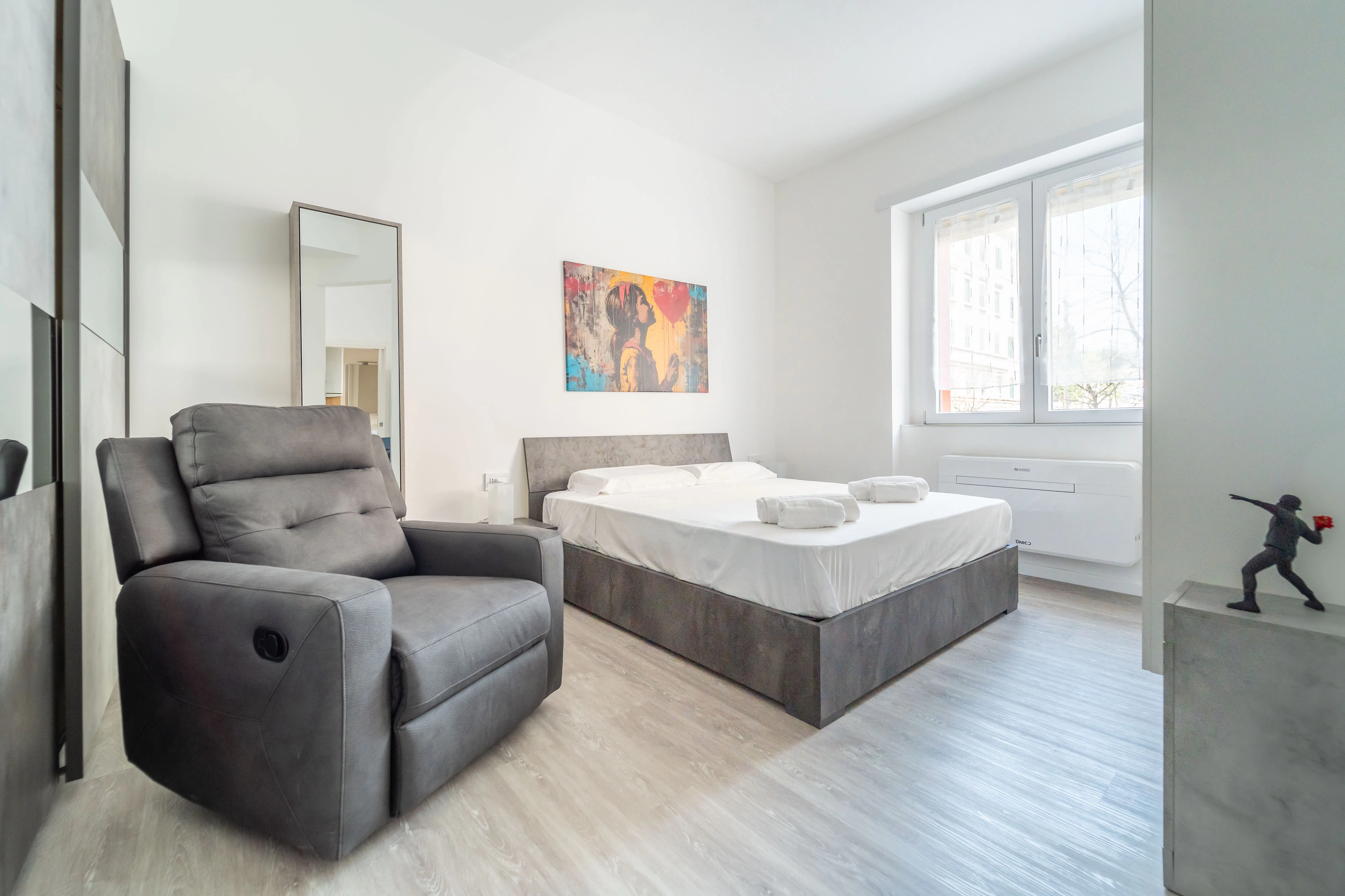 Luminoso ed accogliente loft di 36 mq, perfetto per due persone, situato al primo piano di una palazzina con ascensore (NON idoneo a persone disabili). La proprietà si trova in una zona tranquilla di Trieste e ben fornita dai principali servizi come bar e ristoranti. Il centro città è comodamente raggiungibile sia a piedi con una rilassante passeggiata che tramite i mezzi pubblici. L'alloggio si compone di angolo cottura con zona pranzo, zona notte e bagno. Lo spazio è organizzato come segue: - ZONA PRANZO con ANGOLO COTTURA (piano cottura a induzione, frigorifero, freezer, forno e utensili da cucina) e tavolo da pranzo; - ZONA NOTTE con letto matrimoniale, TV a schermo piatto, poltrona, cassettiera e guardaroba; - BAGNO con box doccia rialzato, lavabo, doccino e WC. ULTERIORI SERVIZI A DISPOSIZIONE DEGLI OSPITI: Wi-Fi illimitato, aria condizionata, riscaldamento autonomo, lavatrice, ferro ed asse da stiro, stendibiancheria e asciugacapelli. ATTENZIONE: - Si segnala la presenza di gradini per accedere alla struttura. Benvenuti a Trieste, una città unica nel suo genere, affacciata sull’Adriatico e ricca di fascino storico e culturale. Qui potrete vivere un soggiorno autentico tra architetture eleganti, caffè storici e scorci sul mare che rendono ogni passeggiata speciale. Il cuore della città è la spettacolare Piazza Unità d'Italia, una delle piazze sul mare più grandi d’Europa, perfetta per iniziare a esplorare il centro. Da qui potrete perdervi tra le vie storiche, scoprire il suggestivo Canal Grande di Trieste e godervi l’atmosfera raffinata dei celebri caffè letterari. A pochi minuti dal centro si trova il magnifico Castello di Miramare, immerso in un parco affacciato sul mare, ideale per una giornata tra natura e panorami mozzafiato. Trieste è perfetta per chi ama la cultura, il mare e le atmosfere autentiche: una città vivace ma rilassata, dove convivono influenze italiane, austro-ungariche e slave. Ottima anche come base per esplorare il Carso, la Slovenia e la costa adriatica. Ideale per coppie, viaggiatori e amanti delle città ricche di storia, Trieste vi conquisterà con il suo carattere elegante e la sua posizione unica tra mare e confine. Principali distanze: - Castello di San Giusto: 10 minuti con il trasporto pubblico / 17 minuti a piedi; - Museo d’Antichità J.J. Winckelmann: 11 minuti con il trasporto pubblico / 18 minuti a piedi; - Teatro Romano: 13 minuti con il trasporto pubblico / 23 minuti a piedi; - Canal Grande di Trieste: 13 minuti con il trasporto pubblico / 26 minuti a piedi; - Piazza Unità d'Italia: 16 minuti con il trasporto pubblico / 25 minuti a piedi. - Bar Cinzia: 1 minuto a piedi; - Osteria Sociale Casa del Popolo: 3 minuti a piedi; - Supermercato Bosco Maxì: 7 minuti a piedi. - Dall'Aeroporto di Trieste, l'appartamento è raggiungibile in circa un'ora tramite il treno fino a Trieste Centrale, da dove è possibile proseguire con il bus 1 fino alla fermata "via Ponziana 5 (angolo via Orlandini)", a 270 metri dalla proprietà. - Dalla Stazione di Trieste, l'appartamento è raggiungibile in circa 17 minuti con il bus 1 fino alla fermata "via Ponziana 5 (angolo via Orlandini)", a 270 metri dalla proprietà. - Se viaggiate in auto, l'appartamento non dispone di un parcheggio, ma è possibile parcheggiare nei dintorni gratuitamente o a pagamento (non garantito)...