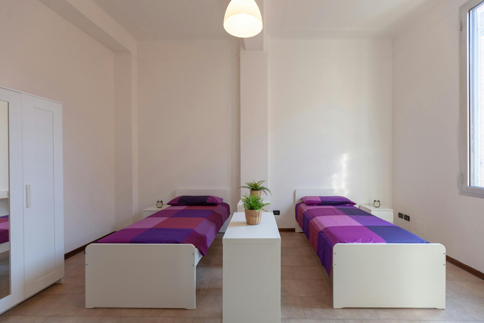 🏡 Cozy room in the heart of Bologna! 🛏️ About your room: This very sunny bedroom comes with a private balcony, a bed, a desk, and a closet. It’s a perfect fit for both students and working professionals! You will enjoy a bright and welcoming atmosphere where you’ll feel at home 🏠. 🍳 About the apartment: The apartment features a cozy kitchen equipped with all the necessary amenities to prepare tasty meals. The dining room is connected to the kitchen and includes a sunny balcony that overlooks the street 🌞. You'll share the kitchen, dining room, and bathroom with 3 other tenants. The modern bathroom has a bathtub, and a washing machine is available for your convenience. 📍 About the area: The apartment is located in a great neighborhood, just minutes away from the city center. Nearby, you'll find supermarkets such as Pam Local, Coop, Global Alimentari, and Mercato Chiesa Nuova, as well as pharmacies, banks, and a variety of restaurants and bars. If you want to enjoy some green space, you can visit Giardino del Guasto. Public transportation is also easily accessible with buses C and T2. 📝 Please Note: Bed linen is not provided. You will have an apartment manager available to assist you if needed. Extra cleaning services will be provided. A deposit is requested either in cash at check-in or within 3 WORKING days before the move-in date. In the latter case, to keep your reservation and avoid losing the first month's rent, you will need to show proof of the bank transfer within 3 working days of your move-in date. After completing the booking, the tenant will sign a contract outlining the rights and obligations of both parties. This legally binding document will be the sole reference in case of any disputes. We look forward to meeting you 🫶...