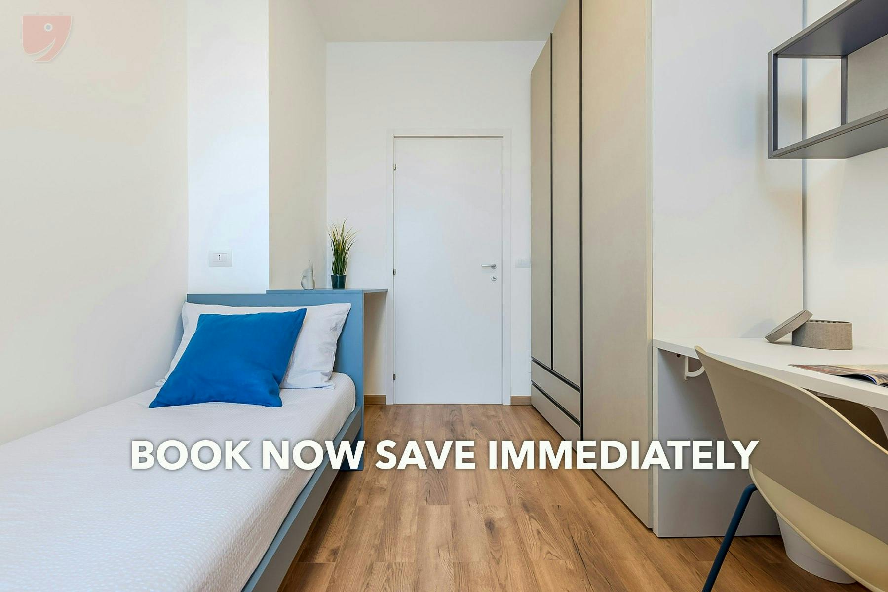 BOOK NOW SAVE IMMEDIATELY Secure with €100, and pay the deposit within February 15th + save €150 on the first month by renting until August 31st! Single Compact Comfort and Style At our company, we love long-term stays! Enjoy significant discounts when you stay with us for 12 months. If you need to stay for less than 12 months but find someone to take over for the remaining period, both of you will benefit from our substantial discounts. Ask for a quote today and start saving! Room: This single room in Ferrara, with its minimalist, clean and refined design, offers a serene and tidy environment. The single bed and desk are efficiently arranged to maximize space, while the understated furnishings and clear lines contribute to an atmosphere of tranquility and functionality. Perfect for students or young professionals, this room is ideal for those who appreciate simplicity and elegance. Apartment: Apartment equipped with new and modern furnishings, the ideal choice for students looking for a perfect balance between university life and urban comfort. Designed to adapt to the dynamism of the student lifestyle, it offers everything you need for a memorable university experience. • Versatile Bedrooms: Different room options, from 9. 00 m2 to 20 m2, each designed to ensure comfort and privacy. • Large Living Room with Practical Kitchen: An ideal space for studying together or for relaxing and eating after lessons. • Three Modern Bathrooms: To allow you to avoid waiting and increase privacy. • Common Laundry: for daily needs. The apartment has been taken care of in every detail, to make your student experience unique and comfortable. We're a bit old-fashioned and still prefer deposits like the good old days, so we require the deposit payment to be made to the property manager's bank account immediately after completing the reservation process on HousingAnywhere...