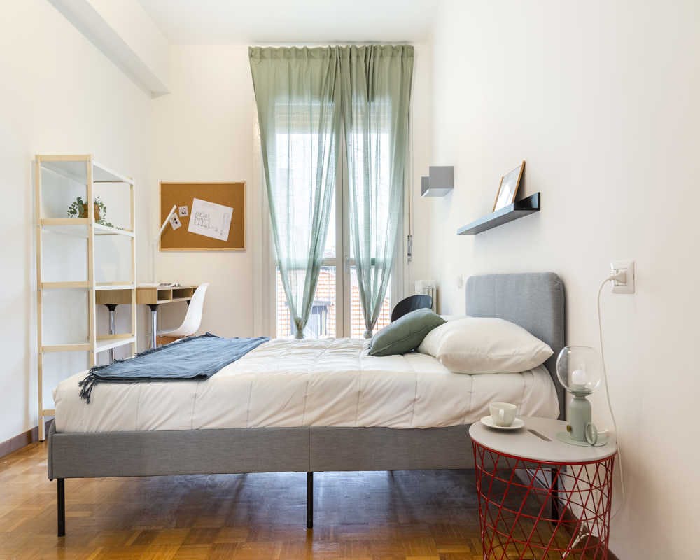 Single room in a shared apartment, composed by 5 bedrooms and 2 bathrooms. Of about 17 sqm with a one and a half bed and a work station. With wifi, bike parking, concierge services, dishwasher, washing machine. Energy class: C, IPE 107.03 Kwh/Sqm year. Current tenants: 1: 21, Female, Student 3: 26, Male, Student 5: 22, Female, Student Please be aware that HousingAnywhere is an online booking platform. Therefore exchanging contact details and offering viewings is not possible. If you would like to reserve this accommodation, send me a booking request or a message and please mention your age and occupation. I look forward to talking to you! CONTRACT Please, note that to all our listings we apply fortnightly contracts. This means that If you check-in during the first half of the month, you will be charged for the full month. If you check-in during the second half of the month, you will only be charged for the second half. The second half of the month starts on the 16th. If you check-out during the first half of the month, you will only pay until the 15th of that month. If you check-out during the second half of the month, you will be charged the full month....