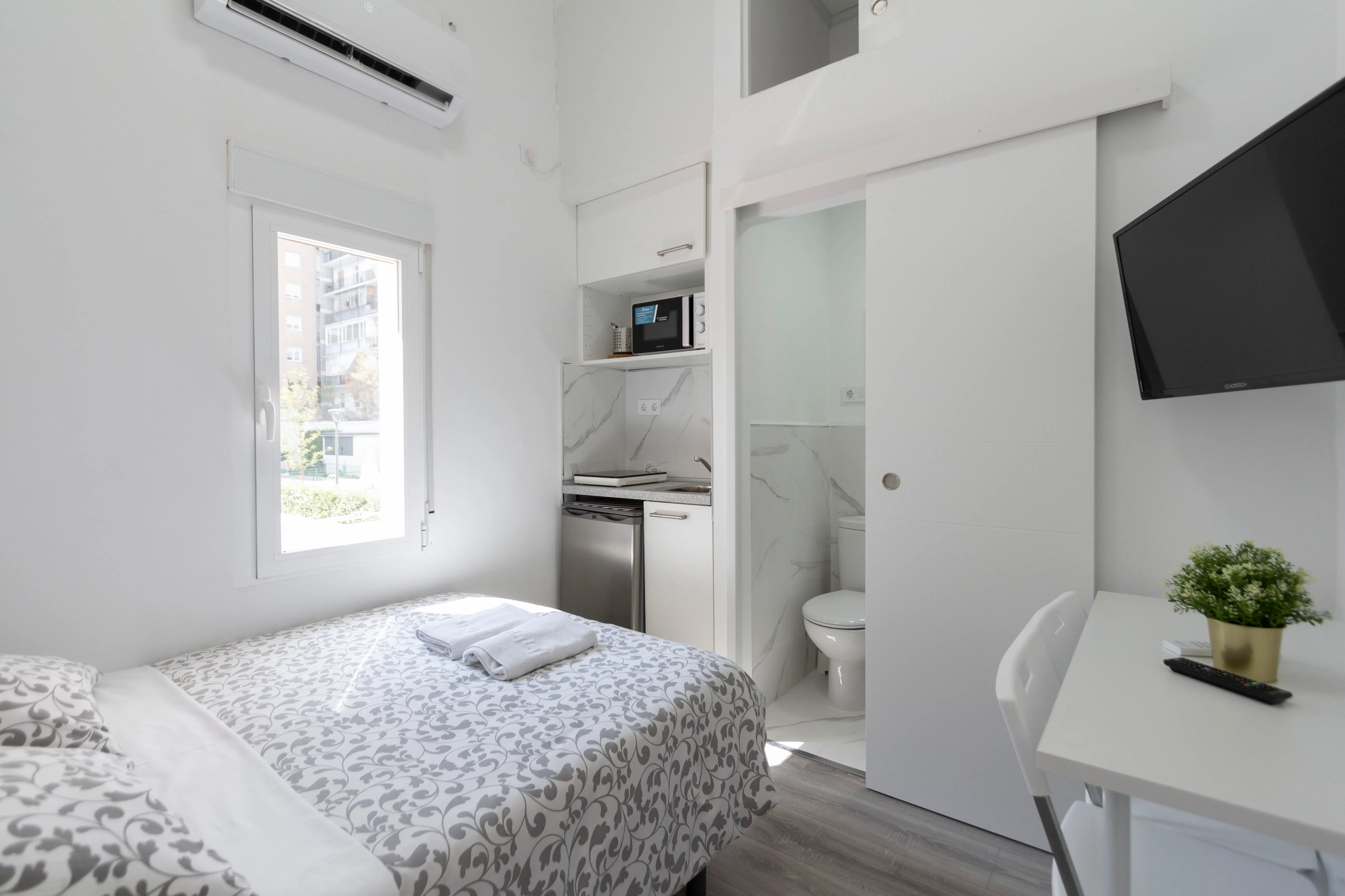 This charming and modern studio on Calle Fernán González, right in the heart of Madrid, is ideal for one or two people. The house features an open-plan living space with a cozy sleeping area with a double bed, a fully equipped kitchenette, and a contemporary bathroom. Large windows allow plenty of natural light, creating a bright and welcoming atmosphere With stylish decor and a prime location near public transport, shops, cafes, and restaurants, this studio provides everything needed for comfortable city living...