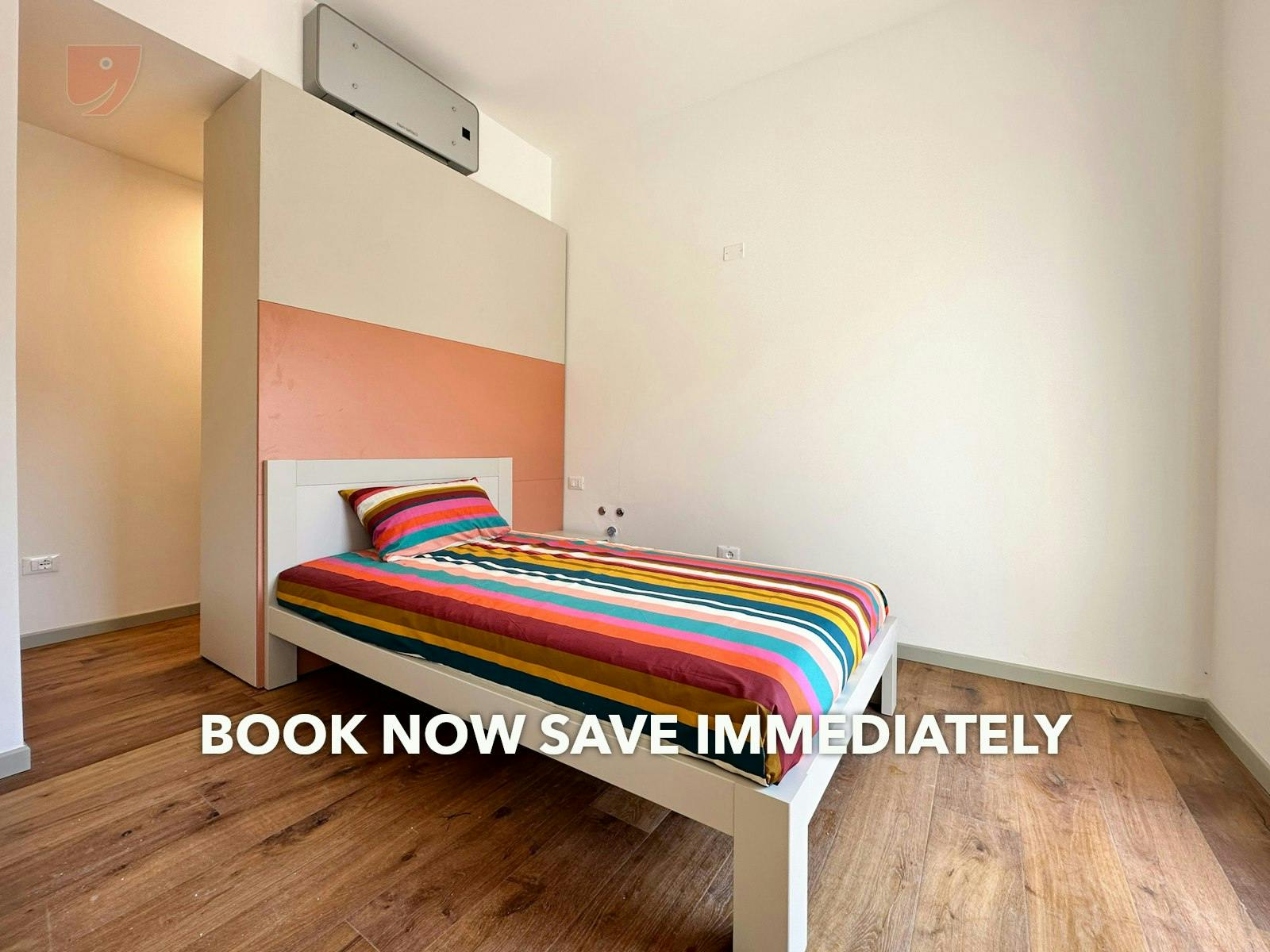 BOOK NOW SAVE IMMEDIATELY Secure with €100, and pay the deposit within February 15th + save €150 on the first month by renting until August 31st! Large 15m2 Single in the heart of Ferrara At our company, we love long-term stays! Enjoy significant discounts when you stay with us for 12 months. If you need to stay for less than 12 months but find someone to take over for the remaining period, both of you will benefit from our substantial discounts. Ask for a quote today and start saving! Room: PHO. ROOM 3. 0: Eco-friendly, Study-friendly! 23 rooms, divided into units of 3, 7 and 13, all equipped with photovoltaic system and air conditioning for eco-friendly comfort. This large and welcoming 15m2 single room will make you feel at home from the first day of your new university adventure! Furnished with a super comfortable bed and orthopedic mattress, a bedside table with two drawers, a large three-door wardrobe and a spacious desk with Babila Pedrali chair, this accommodation offers everything you need to feel at home. Apartment: 7-room apartment in the PHO. ROOM 3. 0 building. Very central and comfortable. PHO. ROOM 3. 0 is synonymous with comfort and practicality for the most demanding students. This 2-bedroom apartment with shared kitchen with 7 students will give you the right balance between privacy and sociability. You will always have your own exclusive, ergonomic and air-conditioned room at your disposal, far from the distractions of the outside world. Enjoy the greenery of our private garden: an oasis of relaxation where you can study outdoors, sunbathe or simply spend a moment of tranquility away from university stress. Don't give up on quality: choose PHO. ROOM 3. 0 for your university stay and live an unforgettable experience. We're a bit old-fashioned and still prefer deposits like the good old days, so we require the deposit payment to be made to the property manager's bank account immediately after completing the reservation process on HousingAnywhere...