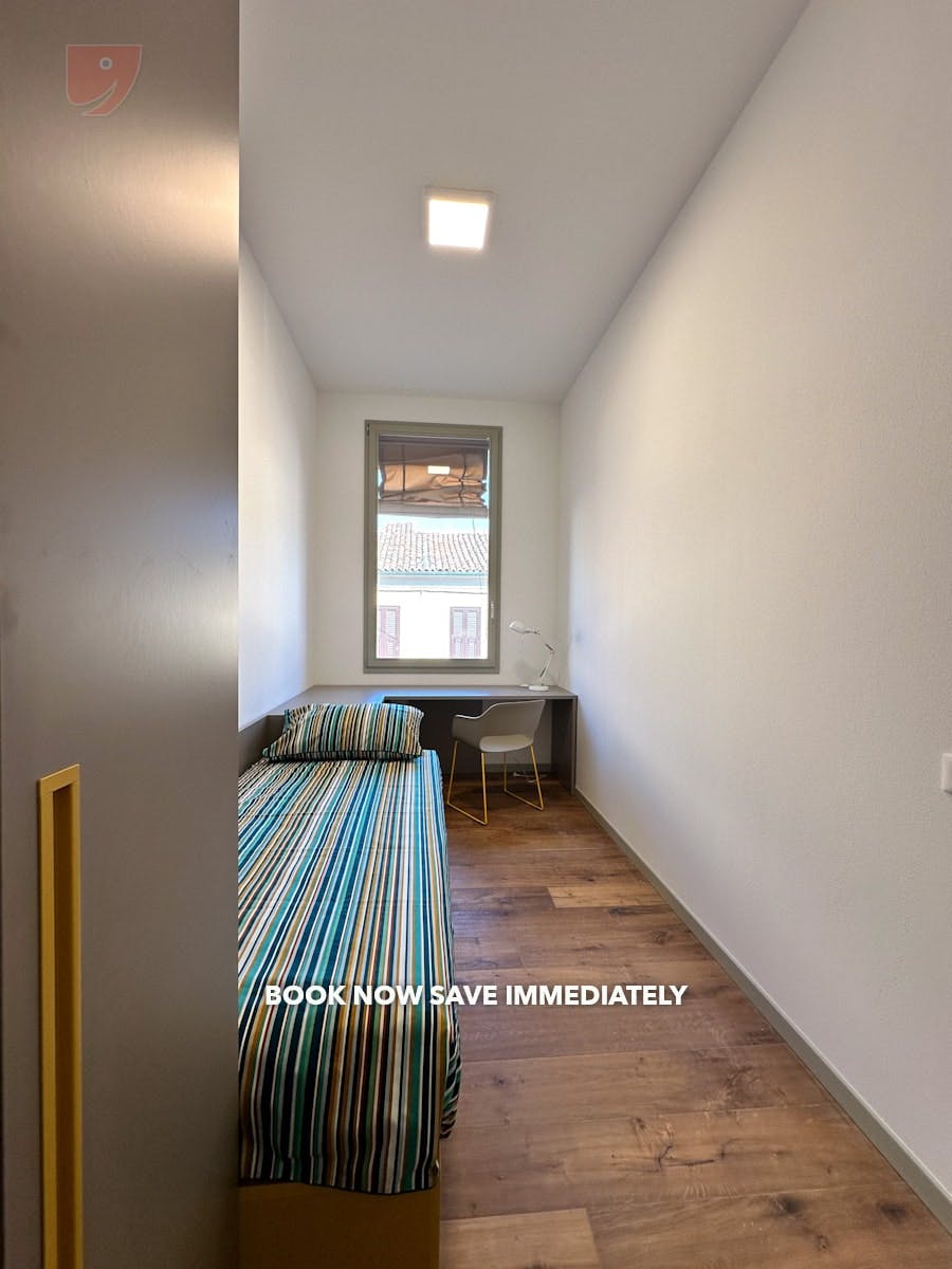 BOOK NOW SAVE IMMEDIATELY Secure with €100, and pay the deposit within February 15th + save €150 on the first month by renting until August 31st! 11 Sqm Fresh and Cozy Single Room! At our company, we love long-term stays! Enjoy significant discounts when you stay with us for 12 months. If you need to stay for less than 12 months but find someone to take over for the remaining period, both of you will benefit from our substantial discounts. Ask for a quote today and start saving! Room: PHO. ROOM 3. 0: Eco-friendly, Study-friendly! 23 rooms, divided into units of 3, 7 and 13, all equipped with a photovoltaic system and air conditioning for ecological comfort. Imagine studying and relaxing in a comfortable, air-conditioned room during the hot summer hours. This room is ideal for a university student looking for peace and concentration during study hours. Furnished with a super comfortable bed with orthopedic mattress, a bedside table with two drawers, a large three-door wardrobe and a spacious desk with Babila Pedrali chair, this accommodation offers everything you need to feel at home. Apartment: PHO. ROOM 3. 0 is synonymous with comfort and convenience for the most demanding students. We offer an unparalleled university living experience, with comforts designed to satisfy every need. Experience a true sense of community in a 7-room apartment, where the shared kitchen of 13 students encourages moments of socialization and exchange among young university students. You will also have your own exclusive, ergonomic and air-conditioned room, away from the distractions of the outside world. Enjoy the greenery of our private garden: an oasis of relaxation where you can study outdoors, sunbathe or simply spend a moment of tranquility away from university stress. Don't give up on quality: choose PHO. ROOM 3. 0 for your university stay and live an unforgettable experience. We're a bit old-fashioned and still prefer deposits like the good old days, so we require the deposit payment to be made to the property manager's bank account immediately after completing the reservation process on HousingAnywhere...