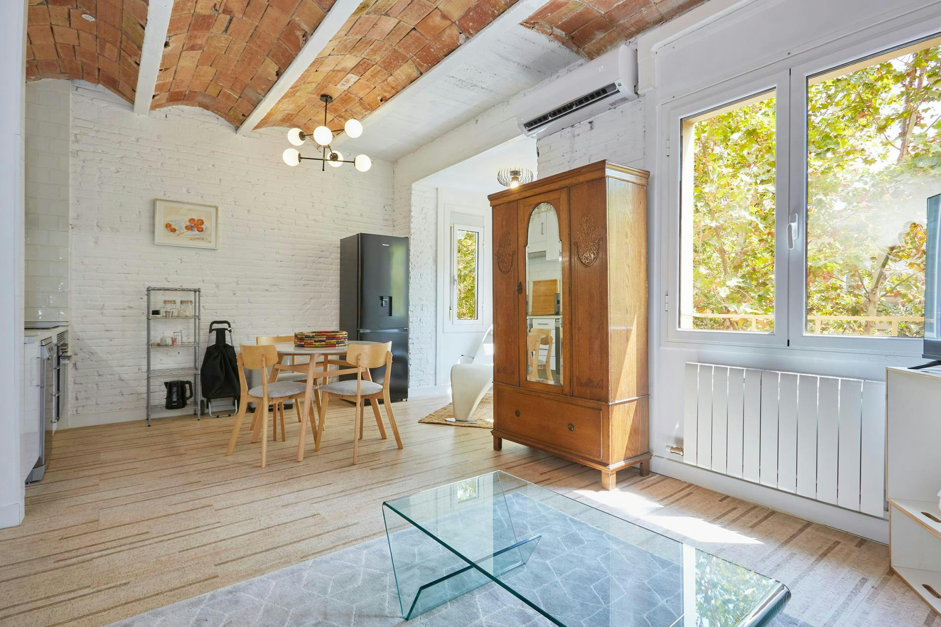 MONTHLY RENTAL (hidden) presents this cozy, fully furnished and equipped apartment located in a building with an elevator. The 110 m2 property features two double bedrooms , a full bathroom with a shower , a fully equipped kitchenette , a bright living-dining room with direct access to a spectacular furnished terrace , and a practical gallery with a laundry area and relaxation space. The property features synthetic parquet floors (cement tiles in the bathroom), split-type air conditioning, gas radiator heating, and built-in wardrobes. One of the bedrooms includes a desk, ideal for teleworking. Located in the Eixample district, specifically in the Sagrada Familia neighborhood , just steps from the Sant Pau Art Nouveau complex and the iconic Sagrada Família Basilica. The family-friendly, residential area offers all the necessary services and excellent public transport connections, with the Sant Pau Dos de Maig metro station (L5) located right in front of the building. For more information about the property and our services, please do not hesitate to contact (hidden) . ADMINISTRATION FEE: 1 month's rent + 21% VAT LOCAL TAXES (I.T.P.): 0.5% of the total reservation (Monthly cost calculated as "other" in the Rent summary. The total amount will be collected before the check-in) BOOKING PROCESS: After the reservation is confirmed, you will be required to pay the remaining payments before the handover of the keys. EARLY-BOOKING POLICY (requests 2 months in advance) If you are planning to book an occupied apartment more than 2 months in advance, we cannot confirm the availability yet (The current tenants have the right to extend their stay). Please, get in contact with us 2 months before your move-in date. NO DISCOUNTS POSSIBLE BOOKING PROCESS: After the reservation is confirmed, you will be required to pay the remaining payments directly to the advertiser before the handover of the keys...