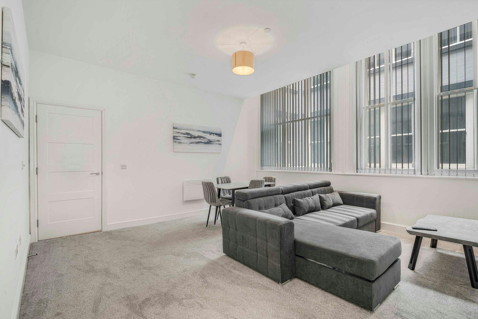 Welcome! Set in the heart of Liverpool, you'll be perfectly placed to explore a city bursting with culture, music, and maritime history. From the famous Albert Dock and The Beatles Story to buzzing bars, shops, and galleries. The living room is comfortably furnished with a sofa that can be turned into a comfortable double bed, a smart TV for enjoying your favourite shows, and a dining table, making it ideal for unwinding and spending quality time with your group. The kitchen is fully equipped with appliances such as a stove, oven, and microwave, along with essential cookware and crockery, to meet all your cooking needs. The bedroom contains a comfortable double bed with hotel-quality linens to ensure a good night's sleep and multiple storage spaces. The bathroom has all the amenities you will need to freshen up, including fresh towels and toiletries for your convenience. A shared laundry room is available, with washing machines, a tumble dryer, vacuums, and mops. The ground-floor garden offers picnic benches, providing a pleasant spot to unwind or have a meal. The apartment is always professionally cleaned for your comfort. Enjoy your stay...