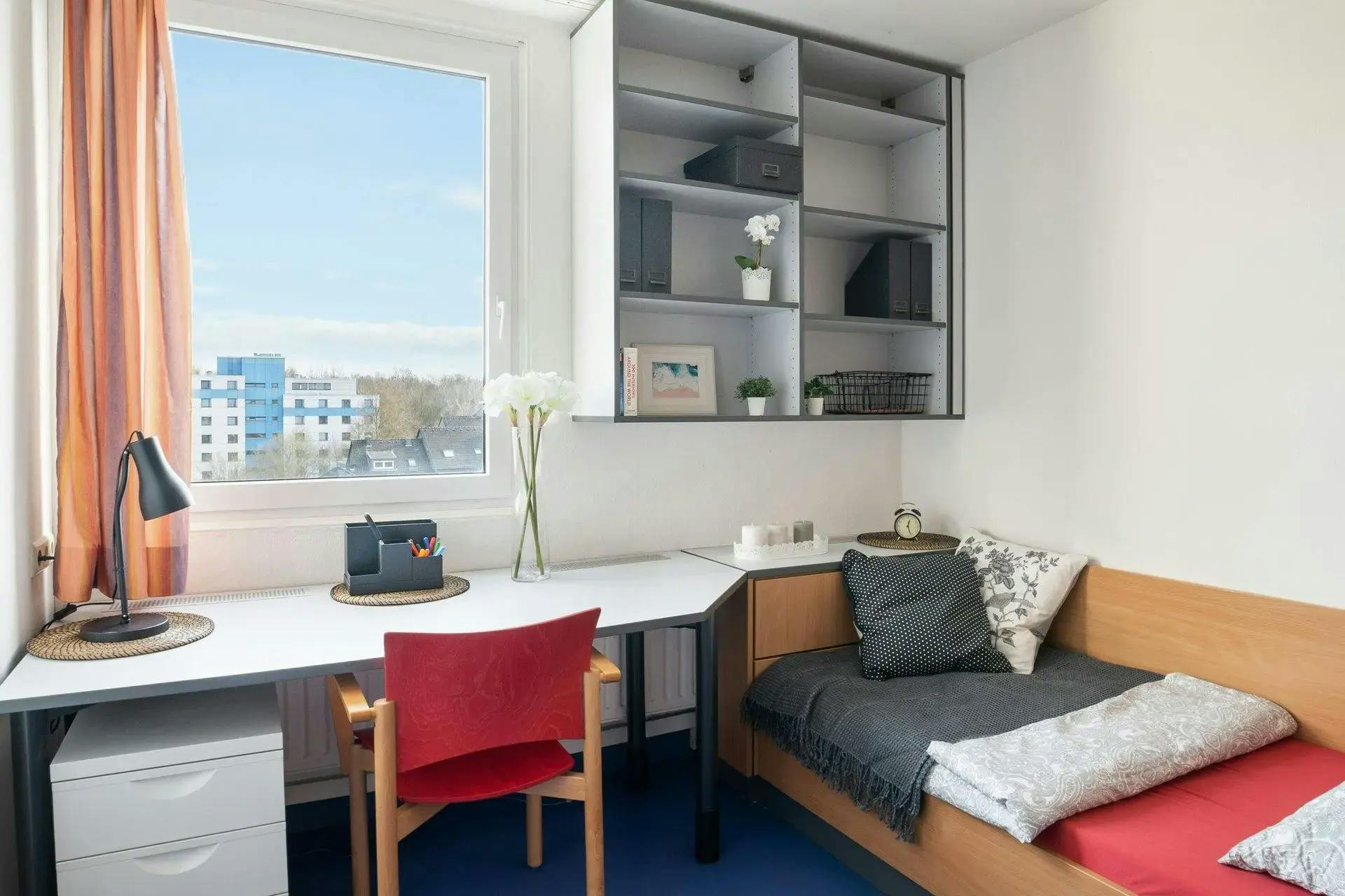 Ein möbliertes Zimmer in Querenburg, Bochum. Das Zimmer befindet sich in einer Etage nur für Damen. Sie teilen sich die Küche, das Badezimmer, den Balkon und den Waschmaschine-Bereich mit anderen Mieterinen. Gesamtmiete: €479 Kaution: €958 Strom, Heizung, Kalt- und Warmwasser, Reinigung der Gemeinschaftsflächen und das Internet sind in der Miete enthalten. Die Verkehrsanbindung ist 5 minuten entfernt und sie können das Einkaufzentrum in 10 minuten erreichen. Parkplätze sind vorhanden. Der Boden ist nur für Frauen verfügbar, insgesamt 18 Zimmer. Sie werden die Küche und das Badezimmer mit 17 anderen Mieterinen teilen. Es ist eine ruhige und freundliche Umgebung. ---------------------------- A furnished room in Querenburg, Bochum. The room is located on a floor reserved for women only. You will share the kitchen, bathroom, balcony, and washing machine area with other female tenants. Monthly rent: €479 Deposit: €958 Electricity, heating, cold and hot water, cleaning of common areas and internet are included in the rent. The transport links are 5 minutes away and you can reach the shopping centre in 10 minutes. Parking is available. The apartment is exclusively for women, with a total of 18 rooms. You will share the kitchen and bathroom with 17 other female tenants. It is a quiet and friendly environment....