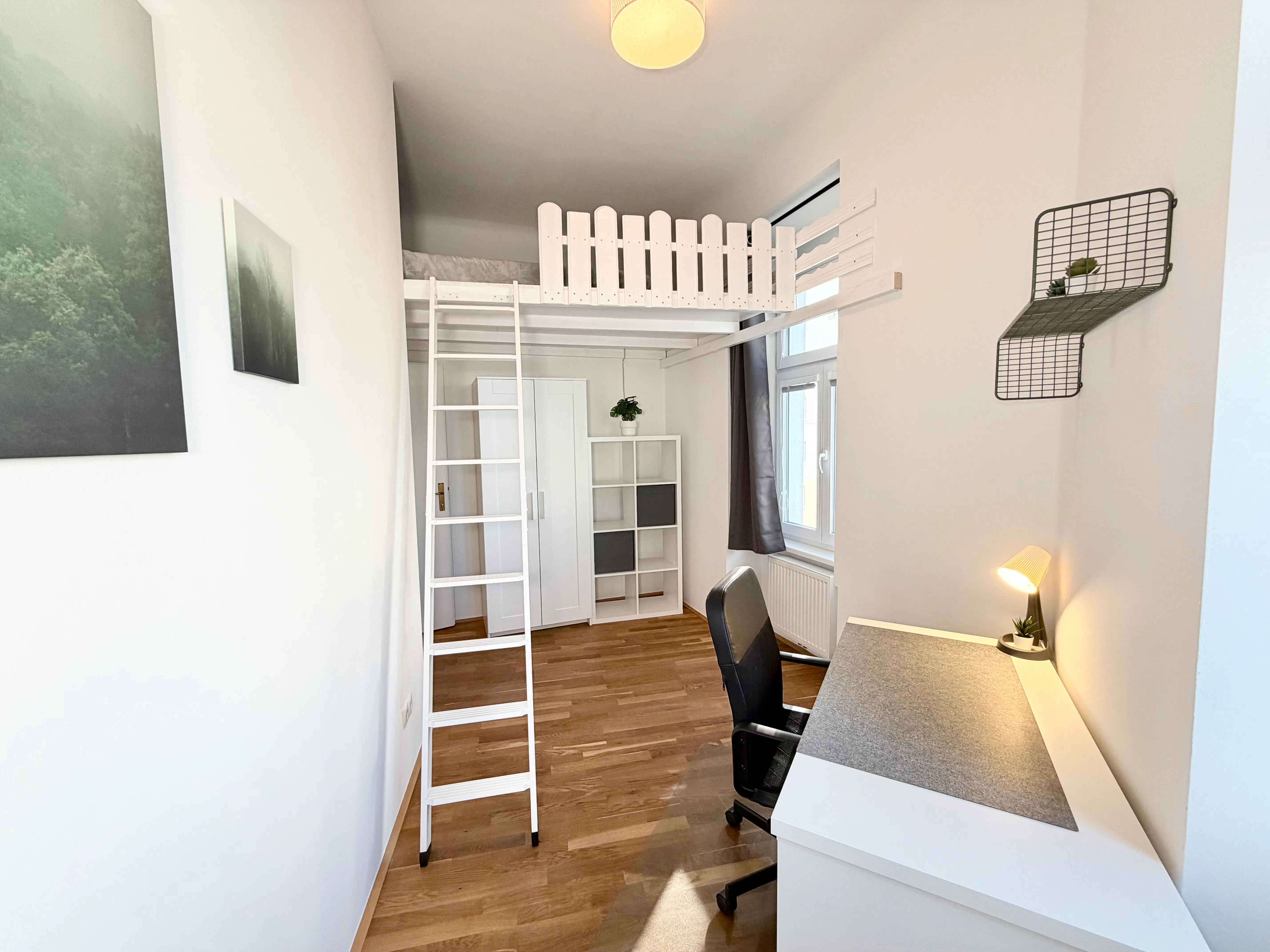 Room 3 is FULLY FURNISHED with a LOFT bed (with linens), wardrobe and a workspace (desk and chair). The kitchen is equipped with all appliances including a dishwasher. Meal prep and cooking essentials also provided. You will have everything you need, just bring your towels and suitcase. The area boasts beautiful parks, markets and bike trails. The city center, main train stations, airport and universities are easily reached with the metro and tram. In just minutes you are connected to the S-Bahn, OBB, Subway and Trams to take you anywhere in Vienna. One of our main objectives is to build together with you, a great open minded, international community and provide you a life in Vienna with a lot of friends and social contacts like in your hometown. This flat-sharing (5 rooms) is mixed and ideal for young open minded people who also want a great networking opportunity. Perfect for students, interns, flight attendants or young professionals to get a good start in the new city. Minimum rental period is 3 months. A second person (couple) costs 150 €/month more. Signing a rental agreement is required. Deposit: 1000€, Administration fee 250...