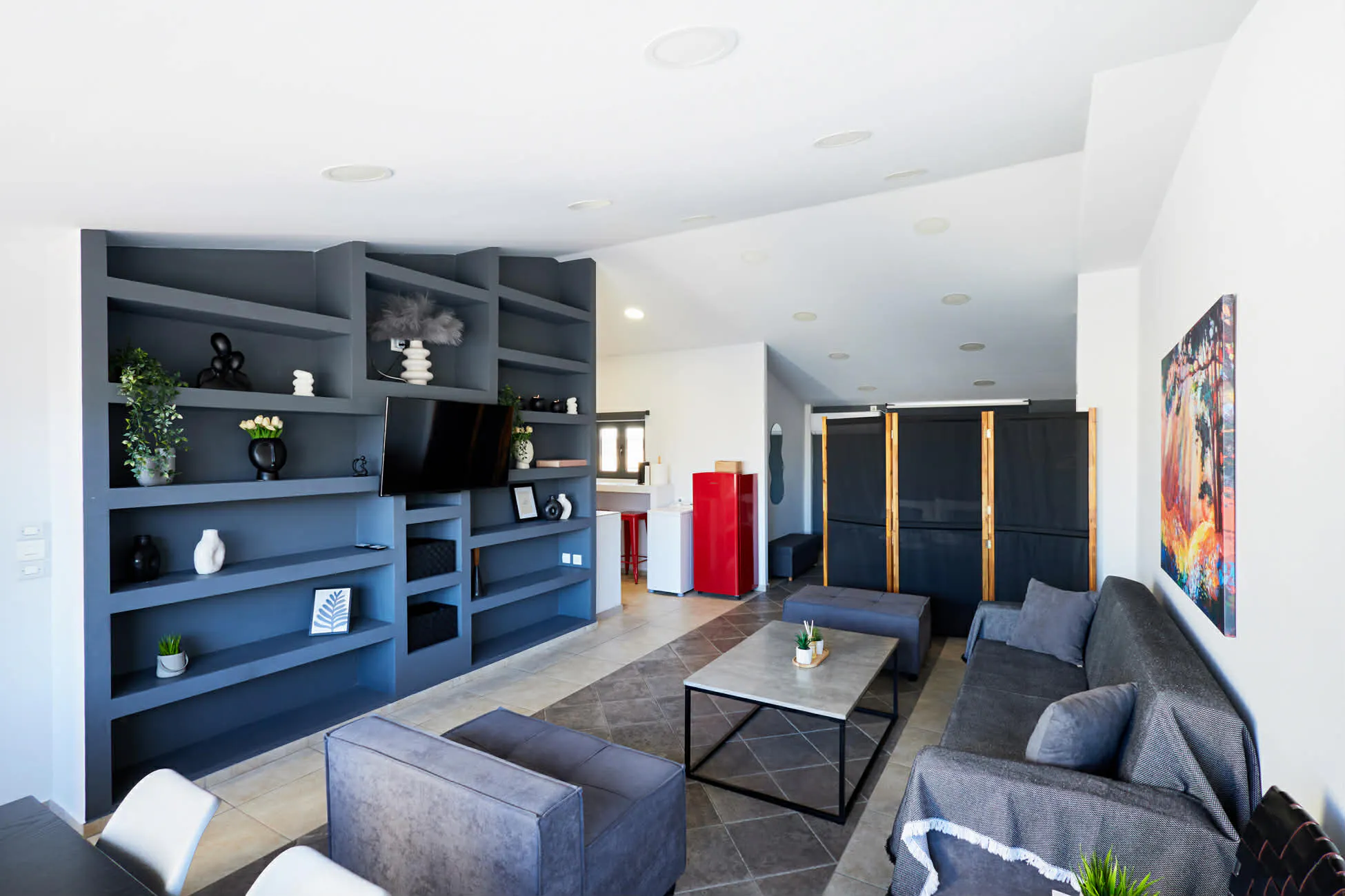 Bright and stylish 44 sq.m. studio apartment, filled with natural daylight thanks to its large windows and open layout. The space is thoughtfully designed to offer comfort and functionality, featuring a modern, newly equipped kitchen with contemporary appliances. The studio includes a comfortable queen-size bed (160×200) for a relaxing night’s sleep, as well as a sofa bed with built-in storage, ideal for extra guests while keeping the space organized. Perfect for couples, solo travelers, or business visitors who appreciate a bright, modern, and well-designed living space. The apartment is located on a central street, offering easy access to everything you may need during your stay. The nearest supermarket is only 400 meters away, while within walking distance you will also find mini markets and local shops with all everyday essentials and consumer products...