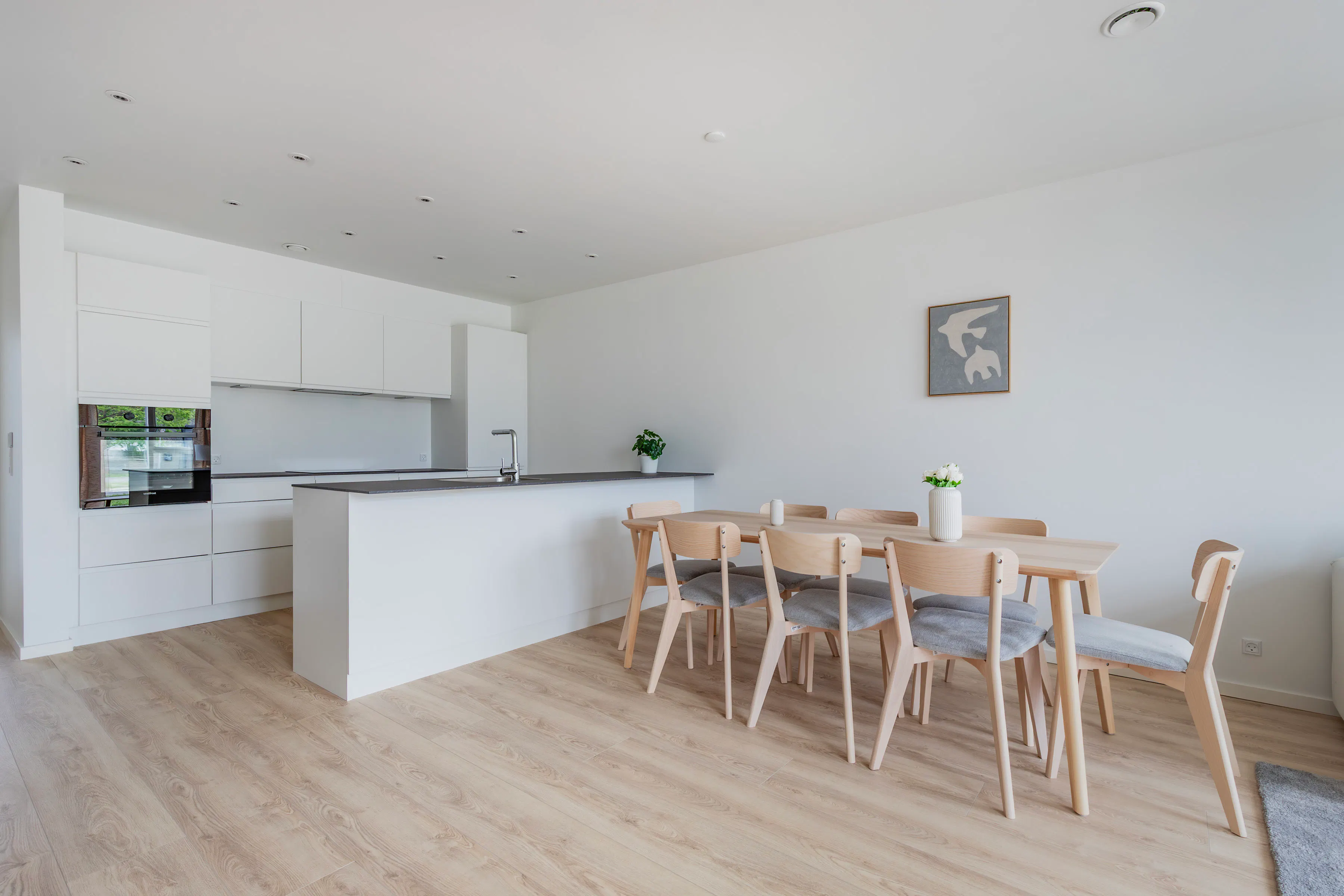 Contemporary townhouses in Frederikssund offering bright interiors, high-quality materials and private terraces. This home is of 4-bedroom layouts. The area is especially suited for corporate housing. Perfect for larger project teams needing comfortable, fully equipped homes with modern kitchens and spacious bathrooms. Located in a quiet setting with easy access to transport and nature. From the house you will enjoy an amazing occasion view...