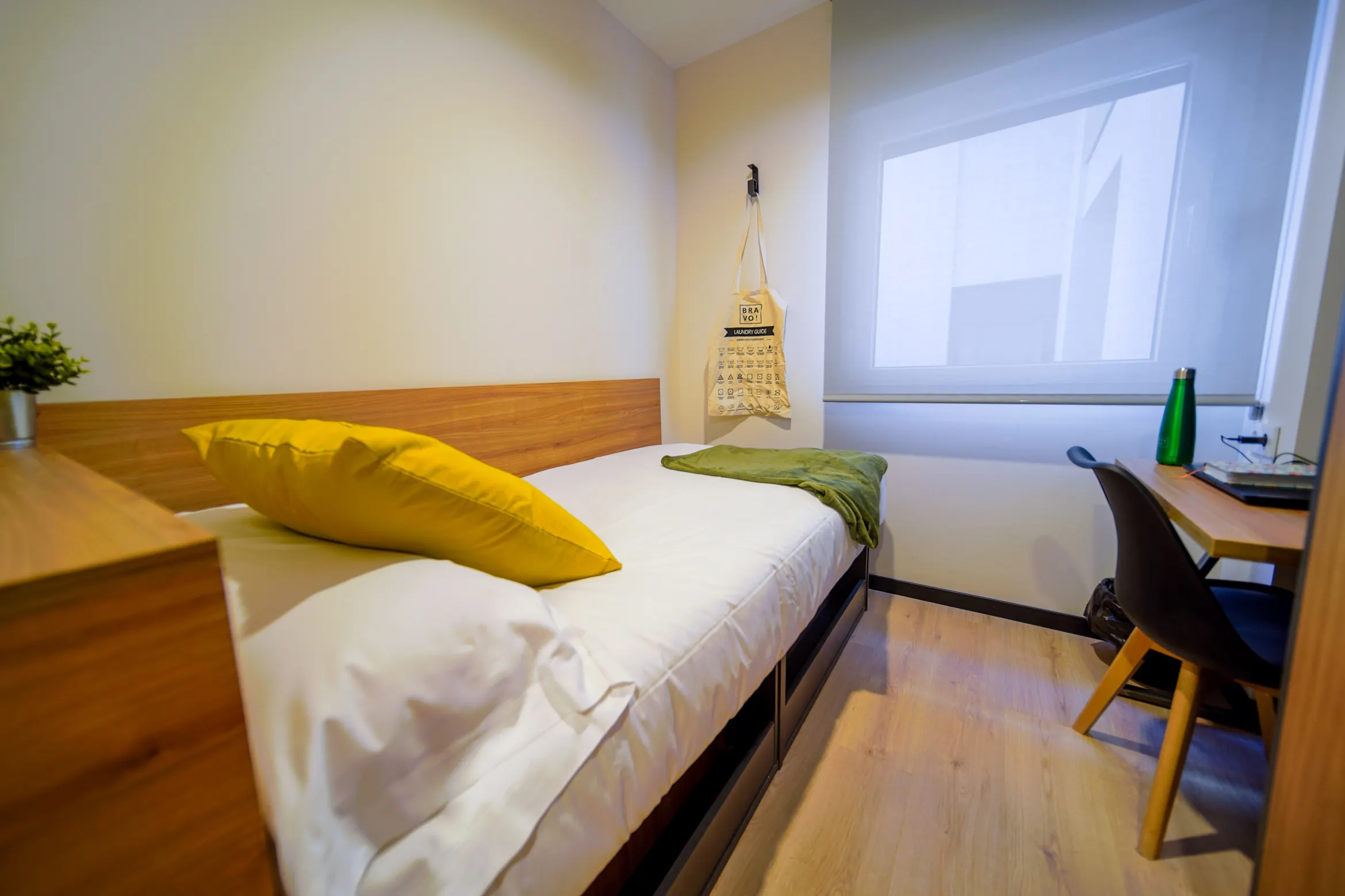 Ucz się, pracuj, nawiązuj kontakty i czuj się jak w domu.Znajdź więcej mieszkań studenckich w Madryt🔸Cleaning room and change of sheets included in the price. It is weekly! 💢 Single room with one shared bathroom with another room. (Apartment of 2 bedrooms with one bathroom with no kitchen. You can use the common kitchen of the building) 💢 Type of bed: 105 x190 🏡Building, common areas and type of units In our residence you will find a place where you’ll have everything you need for university life. This residence offers single rooms in apartments or in the building. Enjoy the incredible common areas such as the study room, living room, reception, canteen or gym and relax sunbathing on our terrace or in our swimming pool. Your comfort and safety are our priority. We offer 24/7 service and CCTV surveillance, ensuring a secure environment at all times. ⭐Restaurant We take great care of our students’ diet. That is why we are committed to a balanced diet, prepared in our residence and always with fresh ingredients. If you are vegetarian, vegan or have any kind of allergy or intolerance, we will adapt the menu to your needs. We offer catering service 7 days a week (Saturday brunch and Sunday dinner) and you can choose between half board and full board. 📍Location and Neighborhood It is located in a privileged and quiet area and very well connected to the whole city. At the door you will find several buses that will quickly take you to the centre and to the Moncloa interchange (Madrid’s transport hub), which will allow you to connect very quickly with all the universities in the city. Don’t miss walk through the city centre visiting the Plaza Mayor and enjoy a delicious “Bocadillo de calamares”. 💢💢💢 🔸After the reservation is completed, you will be required to pay the deposit and other fees through our secure payment system...