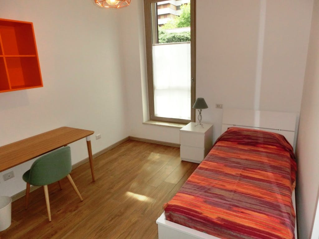 Comfy Bedroom Available for Rent! Modern and Spacious Residence! Only students are allowed in this residence! Located in Via Risorgimento, in the center of Milan. This fully furnished bedroom is bright and cozy. Ideal for 1 person! This 350m2 building consists of 11 rooms all with private bathroom and air conditioning, kitchen, laundry with washing machine and dryer, dishwasher, elevator, dining room, and living room, 40sqm terrace, 2 small terraces, private garden. Very quiet residential area just 5 'walk from the Milan metro line 2 green. Present in a radius of 200m from the residence: a supermarket, newsagent, pizzerias, restaurant, grocery, post office, hairdressers and ample free parking right next to the house. Rental Condition: -Rent: 600 euro/month -Utilities: Electricity, Water, Gas, and Wifi are all included! Weekly cleaning of common areas is included in the monthly fee too. -Deposit: 1200 euro (Paid one time) -When you apply please state the university you'll be attending -Please load your ID in the chat in one of the first messages Please be aware that HousingAnywhere is an online booking platform. Therefore exchanging contact details and offering viewings is not possible. If you would like to reserve this accommodation, send me a booking request or a message and please mention your age and occupation. I look forward to meeting you! --------- Residenza di 11 stanze tutte con bagno privato interno e condizionatore autonomo, cucina fornita, lavanderia con lavatrici e asciugatrice, lavastoviglie, ascensore,sala da pranzo e salone, terrazzo di 40mq, 2 terrazzini, giardino privato. Pulizia settimanale delle zone comuni, wi-fi tutto compreso nel canone mensile. Zona residenziale molto tranquilla a soli 5' a piedi dalla metropolitana di Milano linea 2 verde. Presenti in un raggio di 200m dalla residenza: un supermercato, edicola, pizzerie,ristorante, alimentari, posta, parrucchieri e ampio parcheggio gratuito proprio adiacente alla casa...