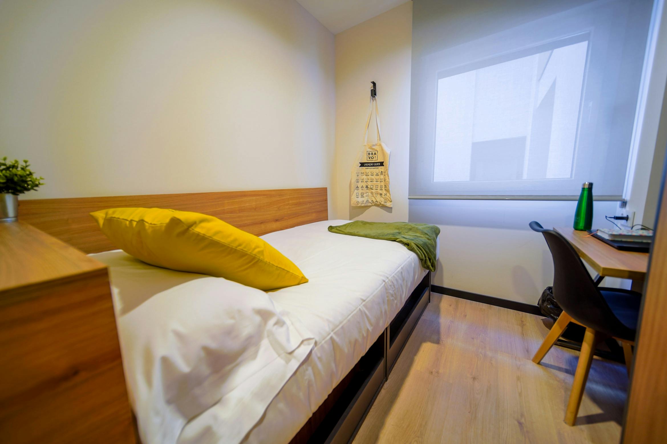 🔸Cleaning room and change of sheets included in the price. It is weekly! 🏡Building, common areas and type of units In our residence you will find a place where you’ll have everything you need for university life. This residence offers single rooms in apartments or in the building. Enjoy the incredible common areas such as the study room, living room, reception, canteen or gym and relax sunbathing on our terrace or in our swimming pool. Your comfort and safety are our priority. We offer 24/7 s...