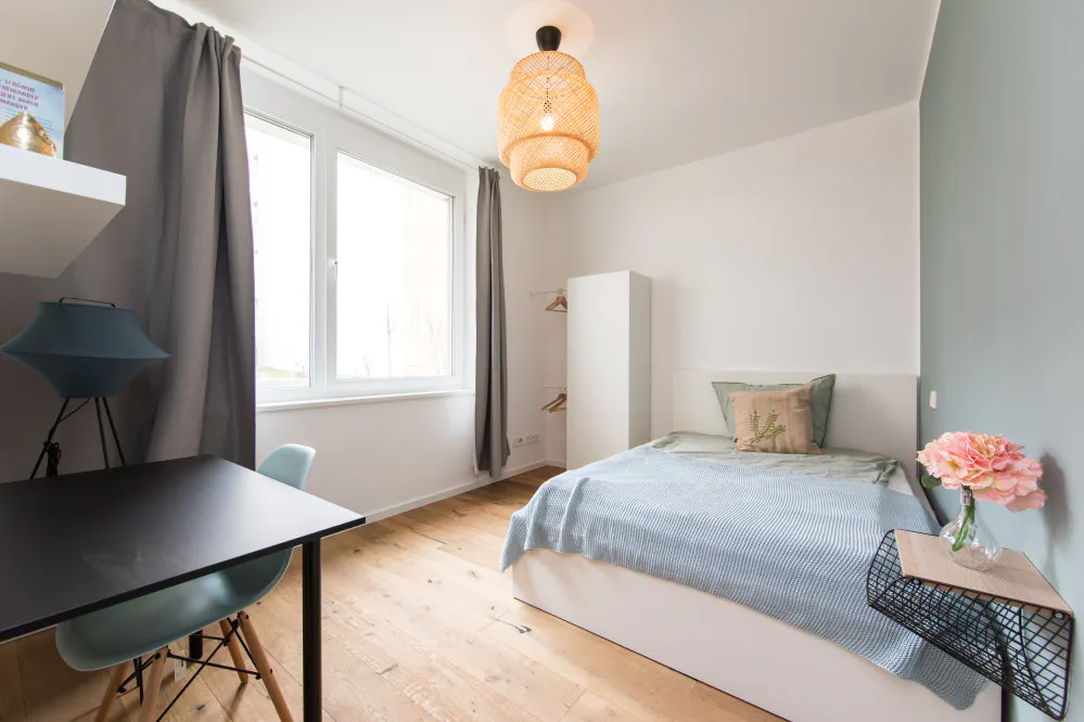 Estudar, trabalhar, relacionar-se e sentir-se em casa.Explore mais residência de estudantes em BerlimWelcome to our beautiful newly renovated apartments, where you bring the spirit and we take care of the rest! Our large number of co-living apartments all consist of spacious and bright rooms in a modern design. The best part is, everything is already fully furnished. In other words, you can literally grab your suitcase and move in tomorrow! Additionally, not only all of the rooms are already equipped with the essentials like electricity, water and internet, but we also offer numerous other facilities that are included in the price. Whether you would like to do sports in our fitness rooms, study in the coworking areas or socialise during organised workshops and events; We have it all! We are located in ‘Wedding’, which has become one of the trendiest areas in Berlin, throughout recent years. Today, Leopoldplatz is surrounded by residential areas, shops, and dining establishments. Wedding is characterized by its diverse mix of cultures and social backgrounds, and the Leopoldplatz district reflects this diversity, creating a vibrant atmosphere. You'll find numerous stores, cafes, restaurants, and markets offering a variety of culinary specialties and products. The district is also home to some green oases, such as Rehberge Park and Schiller Park, providing opportunities for relaxation and recreation. Leopoldplatz is well-served by public transportation. Due to its central location, all other exciting parts of Berlin can easily be reached by public transportation, with U6 and U9 lines arriving at the Leopoldplatz (2-mintue walk) on a regular basis. Overall, the Leopoldplatz district in Wedding offers a diverse and lively experience with an interesting history, cultural diversity, and plenty of options for shopping, dining, and relaxation. With open-minded and international people this place will not only provide you with an amazing new home, but you will also be part of our international and open-minded community, that you do not want to miss out on. Services / facilities that are INCLUDED in the price: - heating, electricity, water - high speed internet - fitness room - community area - working spaces - gaming area - security (camera surveillance) - outdoor areas that can be used as sports facilities - bicycle parking spaces - community manager - great location - *laundry room (including washing machine & dryer) *Please note that although a common laundry room is included in the price, the costs per washing cycle / program are paid individually (2,80€ washing machine & 2,50€ dryer) and are therefore not included in the overall price. What exactly does “fully equipped” mean? Being able to move into a new place the next day does not happen very often, yet we make it possible! Therefore, we have not only taken care of all the necessary amenities, but these are also included in the price and do not involve any additional charges. To give you an overview of your new home, we have listed all of the integrated facilities below: The apartment: • equipped kitchen • oven • *balcony / terrace The bedroom: • wardrobe • desk • chair • mirror • lamp • bed • mattress • blanket • pillow • curtains • floor lamp • shelf • drawer • heating unit *Please note that not all of the rooms have a balcony or terrace. Furthermore, those that do are sometimes shared and therefore more than one room may have access to the same balcony. The exact details of each individual room within the apartment can be seen on the according floorplan, which is included in the pictures. REQUIRED documents: - Proof of income (last 3 months) or work contract - Proof of enrolment (students) - Guarantor (only if you do not have proof of income) - Copy of guarantor's ID (only if you do not have proof of income) - Copy of guarantor's work contract (only if you do not have proof of income) *the landlord only accepts tenants under the age of 40* Check-in /out: - Check-in hours: Monday - Friday from 10:00 - 16:00 - You will receive the exact address for the key transfer once your booking is confirme...