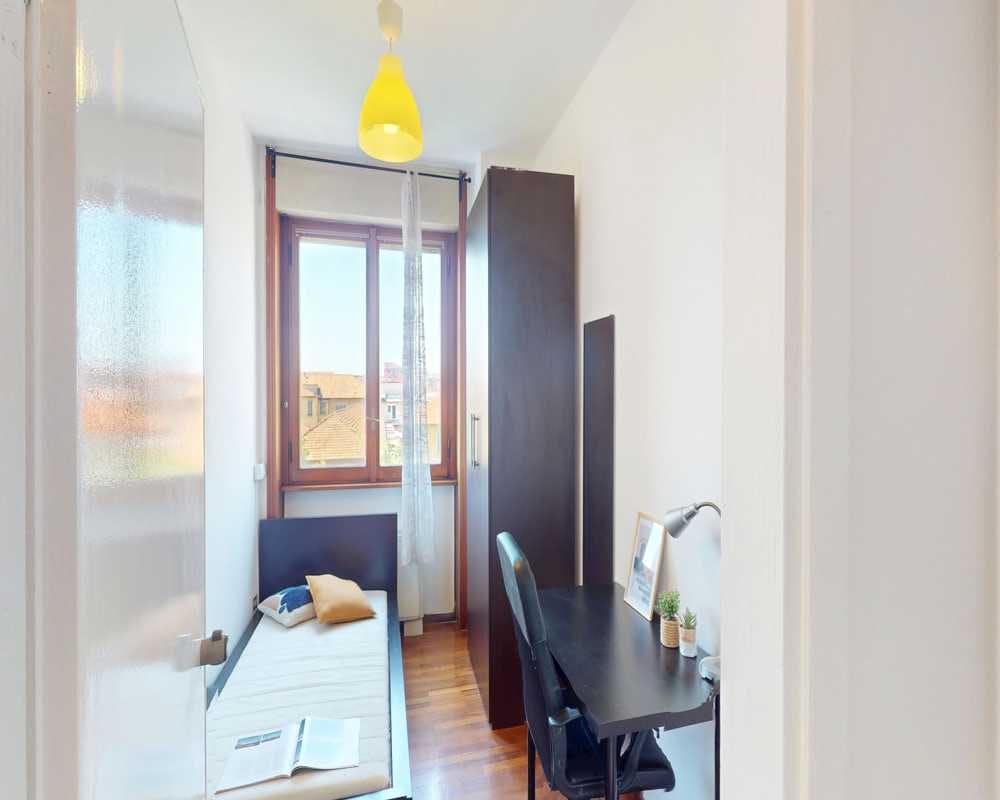 Single room in a shared apartment, composed by 5 bedrooms and 2 bathrooms. Of about 9 sqm with a single bed and a work station. With wifi, air conditioning, concierge services, dishwasher, washing machine. Energy class: E, IPE 114.58 Kwh/Sqm year. Current tenants: 1: 22, Female, Student 2: 24, Male, Student 3: 30, Female, Student 4: 21, Female, Student Please be aware that HousingAnywhere is an online booking platform. Therefore exchanging contact details and offering viewings is not possible. If you would like to reserve this accommodation, send me a booking request or a message and please mention your age and occupation. I look forward to talking to you! CONTRACT Please, note that to all our listings we apply fortnightly contracts. This means that If you check-in during the first half of the month, you will be charged for the full month. If you check-in during the second half of the month, you will only be charged for the second half. The second half of the month starts on the 16th. If you check-out during the first half of the month, you will only pay until the 15th of that month. If you check-out during the second half of the month, you will be charged the full month....