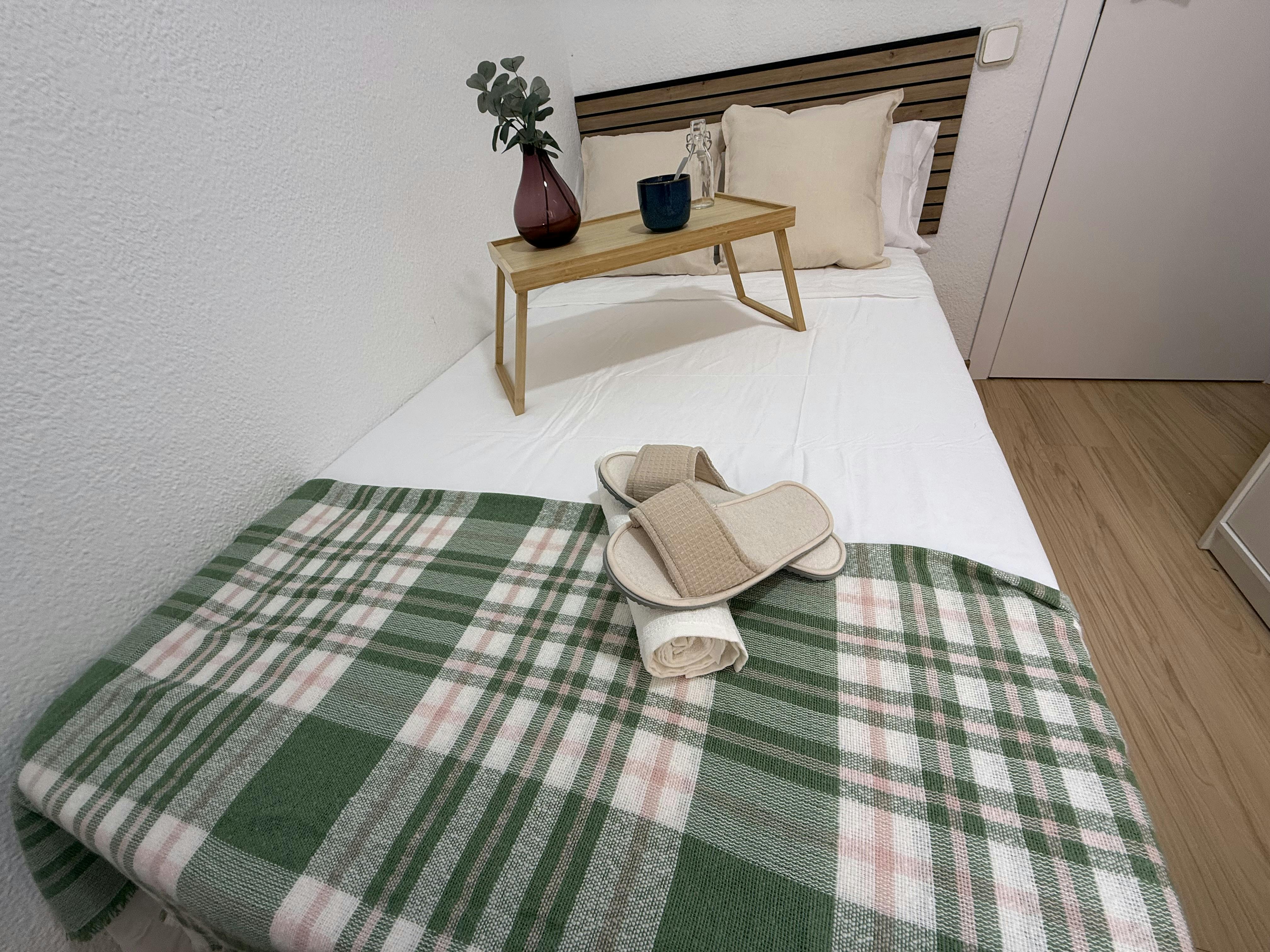 We present a magnificent room with a large window, in one of the best areas for young workers and students. It is located a 3-minute walk from the main universities and a 4-minute walk from the center (Plaza de Cervantes). The bus stop is 100 meters away, taking you to the center of Madrid in 30 minutes. There are many shops, bars, gyms, and more. Spectacular 10m2 room The apartment has been recently renovated. Includes: -All utilities included: gas, electricity, water, and Wi-Fi. -Maintenance technician for repairs. -Option to change to another room at the company. -Contract management. -Cleaning of common areas (hallways, bathrooms, kitchen). -Flexible contracts. -Rooms with high-quality furniture standards. -Door with lock. -Customer service and maintenance. Requirements: - One month's management fees. - Couples are not allowed. - No employment contract or guarantor required. ***** Share an apartment with young students and/or professionals in a great environment **** ++++ Forget about doing the math at the end of the month; expense fees included ++++...