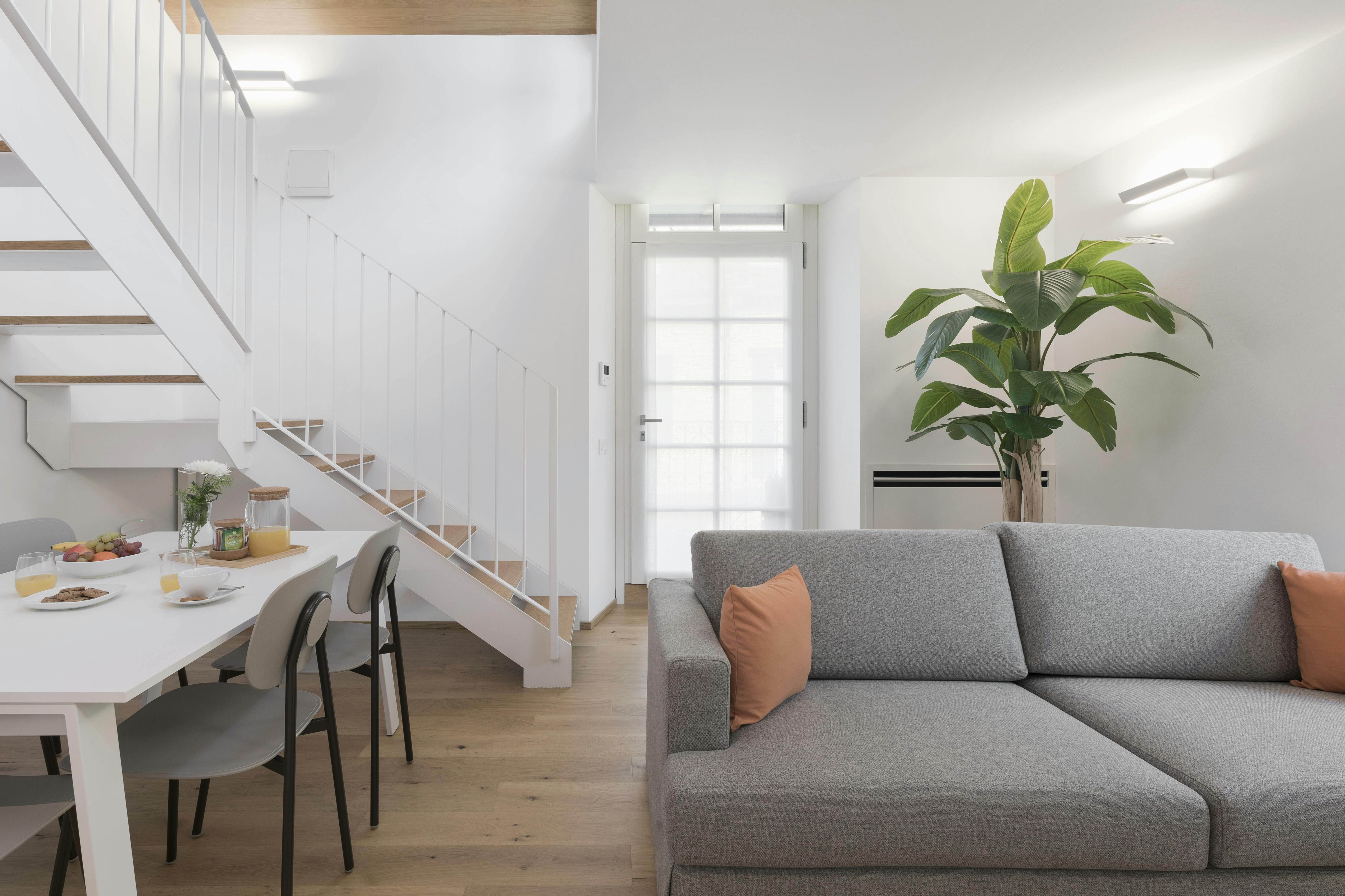 The apartment has a kitchen equipped with an induction hob, refrigerator, dishwasher, microwave, Nespresso coffee machine, and kettle. The table can accommodate up to four people, and the living area with a sofa is equipped with a 43" Smart TV. On the ground floor, there is a double bedroom with a wardrobe and a window overlooking the balcony. In the corridor, there is a bathroom with a large shower, basin, bidet, and toilet. On the upper floor, there is access to a bedroom with two single beds and a terrace furnished with a table and chairs. The laundry room with washing machines and dryers shared with other guests is located on the ground floor of the building. The apartment is equipped with an air conditioning system managed by a remote system that automatically regulates temperatures to avoid wasting energy. There is also a controlled mechanical ventilation system that maintains an ideal climate by also regulating humidity, to the point that it is recommended to always keep the windows closed. Private parking spaces are available at an extra cost of 20€ per night. Height: 1,67 m; Width: 2,1 m; Length: 4,9...