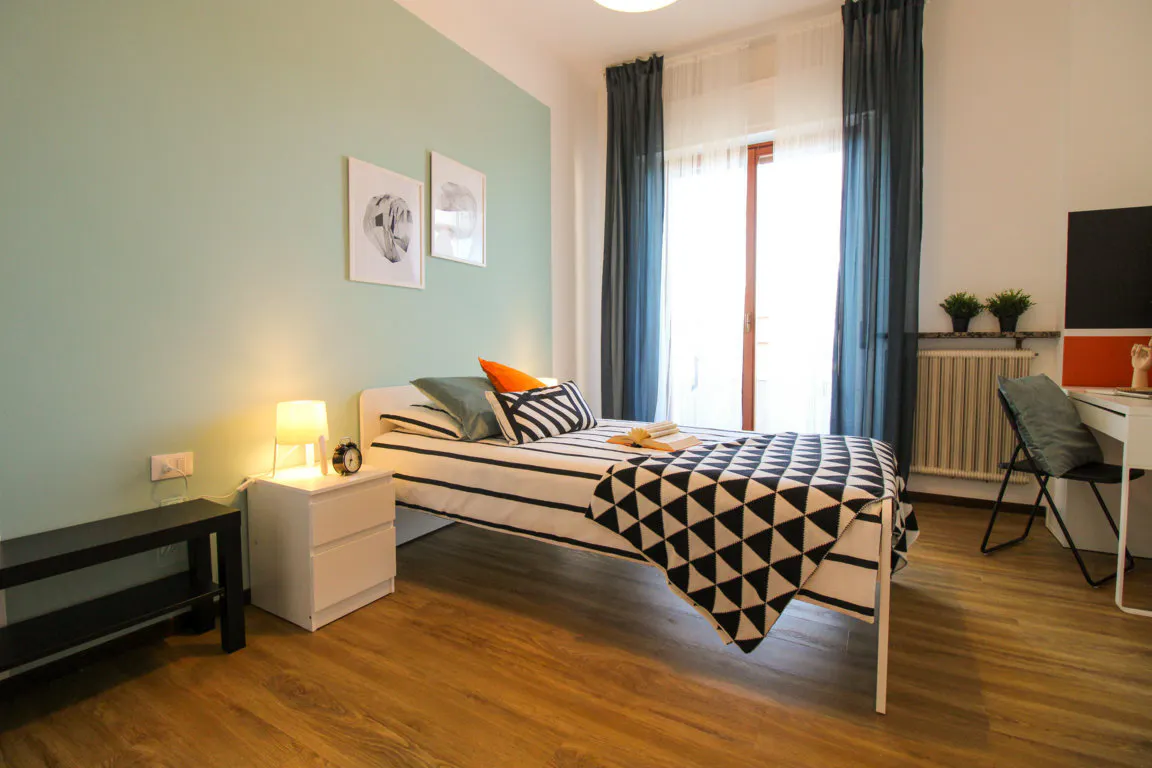 Zona (hidden) 2, posizione strategica e ambita, si affitta una bellissima singola con balcone rimodernata appositamente per offrire comfort e comodità ai nostri studenti. La è dotata di letto singolo, armadio, scrivania, comodino, tendaggi, specchio, scarpiera. I colori delle pareti favoriscono il buon umore e aiutano nello studio...