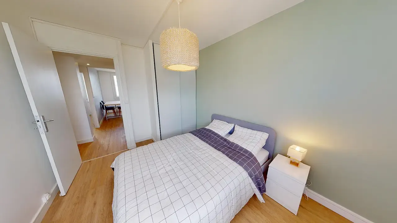 Notre agence vous présente cette colocation de 3 chambres de 55,66 m2 localisée au 53 Boulevard Joliot Curie à Fontaine (38600). 🛌 LA CHAMBRE Cette lumineuse chambre de 10,5m2 propose un lit double, une table de chevet avec lampe, un bureau rangements avec chaise et un grand placard mural. 🏠 LES ESPACES COMMUNS L'appartement s'ouvre sur une chaleureuse pièce de vie avec un canapé deux places, deux tables basses rangements, un meuble TV avec télévision et une lampe. La cuisine entièrement rénovée est équipée avec un four, quatre plaques à induction avec une hotte, un évier, un réfrigérateur avec congélateur, une poubelle et une machine à laver. Cette pièce offre également un table avec quatre chaises, idéal pour partager des repas entre colocataires. La salle de bain se compose d'une grande douche, un meuble vasque avec un grand miroir, les toilettes sont séparées. 🌳 LES EXTÉRIEURS Ce T4 bénéficie aussi d'un local vélos et d'une cave. 🏙️ LE QUARTIER Cette colocation se situe à moins de 10 minutes à pied de l’arrêt Fontaine Hôtel de Ville - La source et à 5 minutes à pied de l’arrêt de Tram Louis Maisonnat desservi par la ligne A qui permet de rejoindre rapidement le centre-ville de Grenoble. L'arrêt de bus Curie-Vercors situé à 55m du logement est desservi par les lignes 19 & C6. ———————————————————————— Bail individuel à la chambre. Pas de caution solidaire. Chacun est libre de partir quand il veut sans se soucier des autres colocs, dès le moment où il respecte un mois de préavis. Eligible aux APL. Les informations sur les risques auxquels ce bien est exposé sont disponibles sur le site Géorisques : (hidden) Montant estimé des dépenses annuelles d'énergie pour un usage standard : 1130 € par an. Prix moyens des énergies indexés sur l'année 2021,2022,2023 (abonnements compris...