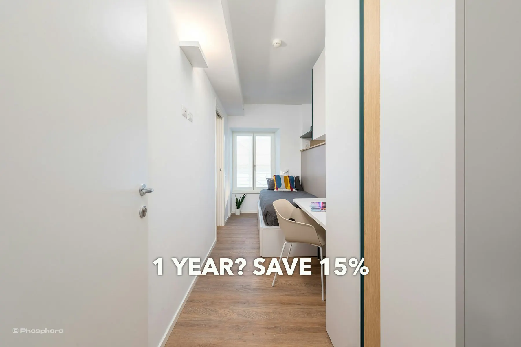 Single Room with Exclusive Bathroom and Air Conditioning At our company, we love long-term stays! Enjoy significant discounts when you stay with us for 12 months. If you need to stay for less than 12 months but find someone to take over for the remaining period, both of you will benefit from our substantial discounts. Ask for a quote today and start saving! Room: Minerva Student Hotel - Study, Live, Discover! 24 students, 24 singles with bathroom, 2 steps from the faculties. This comfortable room combines the privacy of an exclusive environment with all the services of a residence exclusively for students. Set up with the needs of those who have to spend many hours studying in mind, it has a spacious desk with a beautiful lamp, a chair for comfortable reading, a bookcase and a large wardrobe with internal drawers. Available from 07/22/2023 Apartment: In the heart of the city, a stone's throw from the humanities faculties of the University of Trento, stands Minerva Student Housing, a newly renovated building which combines the charm of a historical context with the comfort of the most modern services. A home a stone's throw from the Duomo, where you can live in an international environment, study and build friendships. The residence consists of 24 single rooms with private bathroom and air conditioning, designed to guarantee everyone the privacy, study and rest necessary to maximize their academic performance. The common areas, on the other hand, aim to encourage interaction between children and the creation of opportunities for exchange and personal growth: "mens sana in corpore sano", thanks to the large equipped kitchen, the study room and the gym in shape. The concept created by (hidden), based on many years of experience gained in the management of co-living between students, lives up to the highest expectations, merging style, functionality and comfort: colors to promote concentration, well-being and energy functional design furniture enhancement of light ergonomic seats orthopedic mattresses Services included: cleaning of common areas air conditioning in the room keyless entry with personal code common areas accessible 24/7 wifi internet study room kitchen area dedicated fridge space fitness area bike parking surveillance cameras stays up to 10 months There is a launderette. The estimated expenses refer to a virtuous consumption profile. We're a bit old-fashioned and still prefer deposits like the good old days, so we require the deposit payment to be made to the property manager's bank account immediately after completing the reservation process on HousingAnywhere...