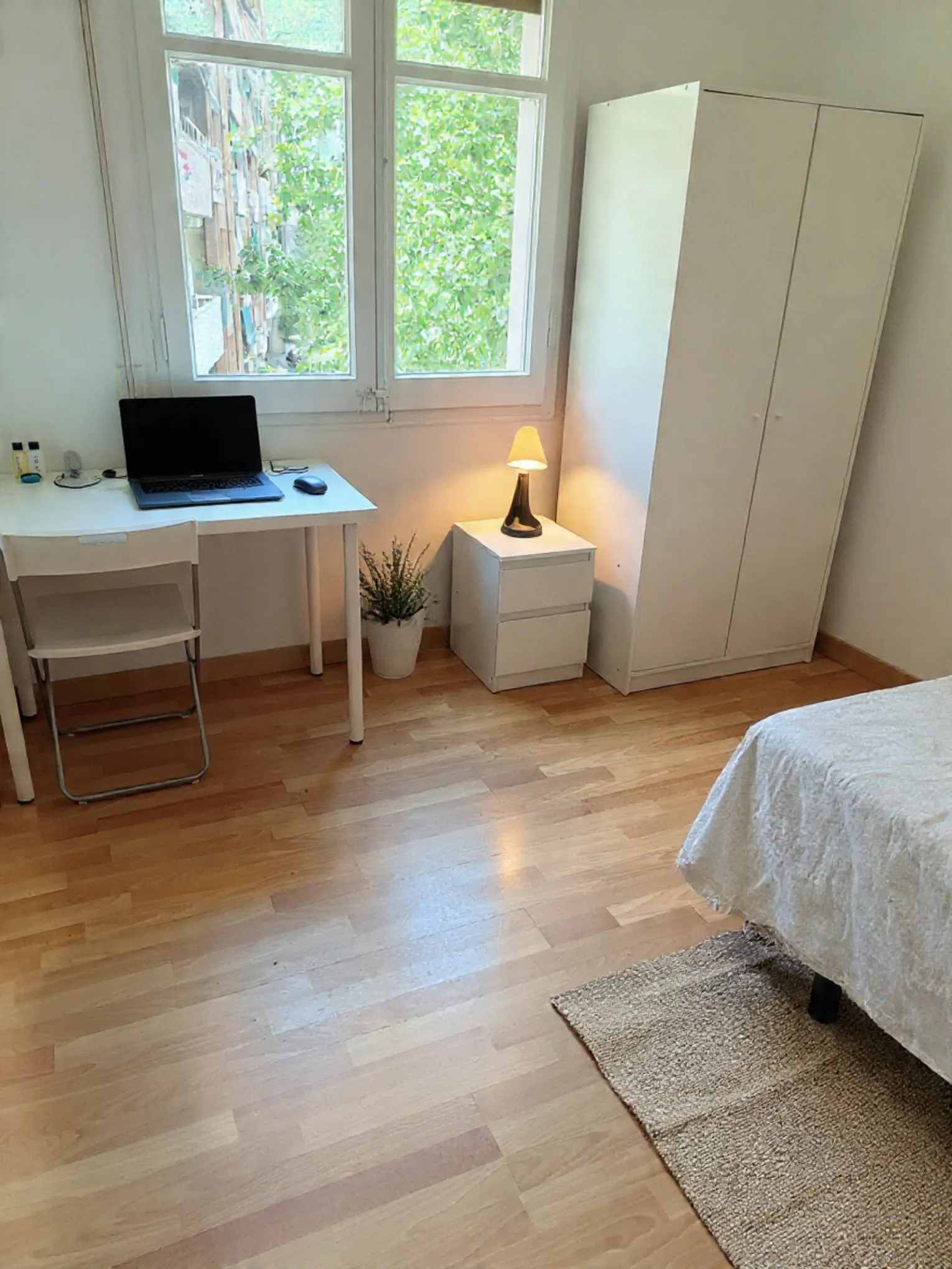 Spacious room with plenty of natural light and views of the avenue. The apartment: fully equipped kitchen, 1 full bathroom, and 1 half-bathroom. Elevator available. WE ARE LOOKING FOR: respectful, clean, and calm individuals. No drugs or parties allowed. Conditions: **All expenses included. **Weekly cleaning included. **1 month deposit Text us a bit about yourself to receive a reply. +34,.,6.,0.,.4.,5.,.4.,.3.,.5.,.,.0.,.,....