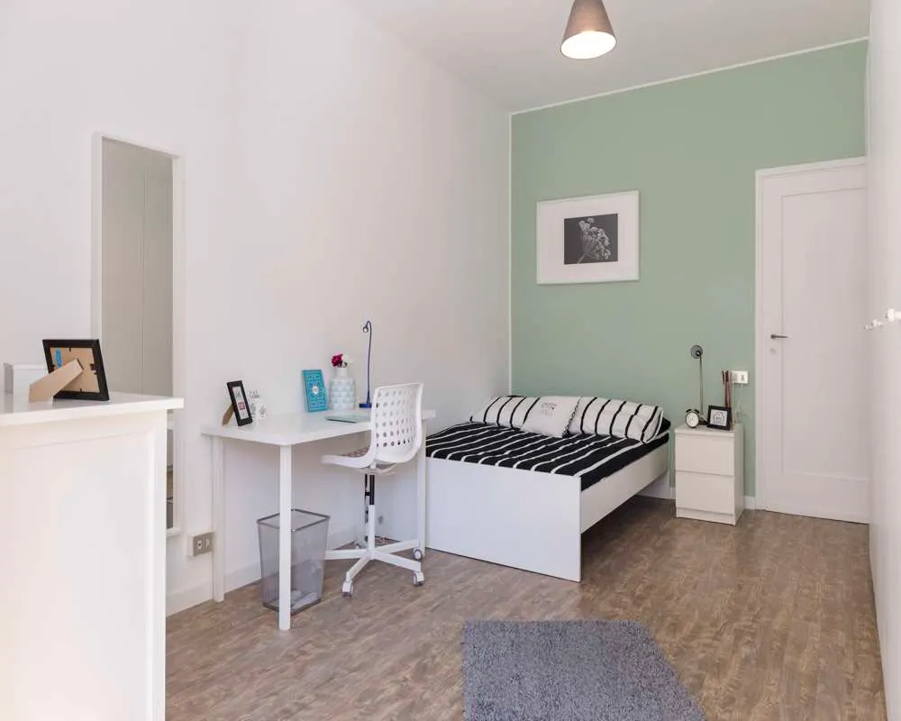 Single room in a shared apartment, composed by 3 bedrooms and 2 bathrooms. Of about 19 sqm with a one and a half bed and a work station. With wifi, terrace, concierge services, dishwasher, washing machine. Energy class: F, IPE 130.00 Kwh/Sqm year. Current tenants: 1: 27, Female, Student 2: 25, Female, Worker Please be aware that HousingAnywhere is an online booking platform. Therefore exchanging contact details and offering viewings is not possible. If you would like to reserve this accommodation, send me a booking request or a message and please mention your age and occupation. I look forward to talking to you! CONTRACT Please, note that to all our listings we apply fortnightly contracts. This means that If you check-in during the first half of the month, you will be charged for the full month. If you check-in during the second half of the month, you will only be charged for the second half. The second half of the month starts on the 16th. If you check-out during the first half of the month, you will only pay until the 15th of that month. If you check-out during the second half of the month, you will be charged the full month....