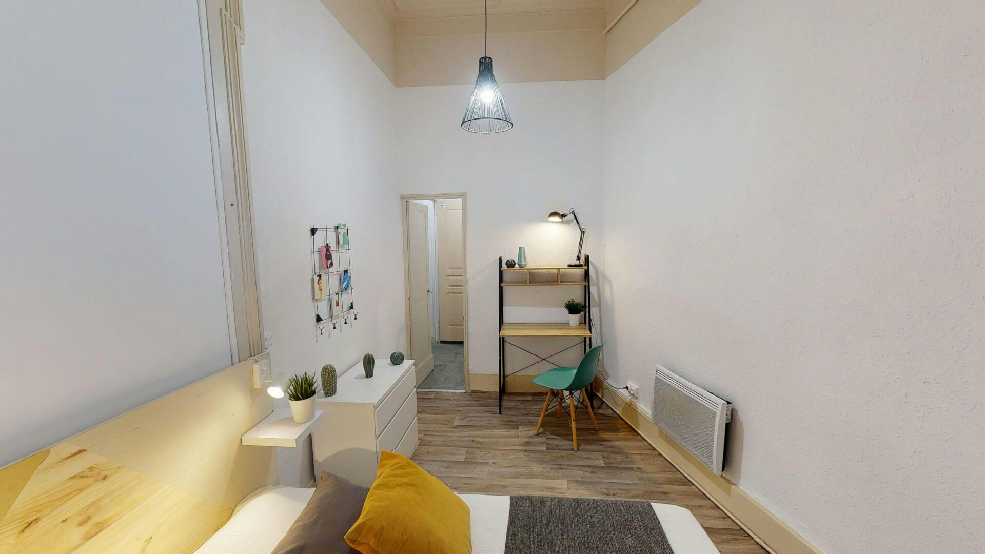 Furnished flat share ! All our flats are located in the city centre and close to all amenities and public transport (Metro, Tramway and Bus). This lovely private bedroom in a fully equipped, furnished and all-inclusive flatshare in Montpellier is a mix of comfort and design. It has got household furnishings, including a bed with pillows and duvet What is missing is your things to feel at home! The room can be locked if you need intimacy. All our rooms are fully furnished (bed, desk, wardrobe, duvet, pillows...). The flatshare can be found in the "Gares" neighborhood, in the heart of Montpellier. Plenty of shops, restaurants, public transports are available close at hand. The apartment is on floor #1 . It is ready-to-live-in and is composed of a large kitchen with refrigerator, toaster, pans, kitchen ustensils, crockery, microwave, kettle... The accommodation also contains a clothes rack, an iron, a washing machine, an ironing board. Additionally, you will find cleaning items in the flatshare: broom, bagless hoover, mop and bucket, dustpan and brush... Every furnished flatshare includes all expenses: unlimited wi-fi, housing insurance, water, condominium fees, electricity, household waste tax. All our flats are fully equipped (washing machine, dishes, decoration...) by our teams, who also take care of the technical and material maintenance. Want to know more about the neighbourhood where this room in a fully furnished flatshare is located? With its neoclassical façade and its Greek columns in the foreground, the Saint-Roch train station is a remarkable building you can't miss. It is the nerve centre of Montpellier: both tramways and several busses reach this place and leave to the surrounding areas. The regional and international train networks depart from the very centre of Montpellier. The Planchon squares sits just in front of the train station since 1858 – a small but cosy park where you can spend time in the sun. Fun fact: a Ginkgo Biloba, a massive tree with a circumferences of 4,5 meters (almost 15 feet!) which was probably planted at the opening of the park, can offer some nice shadows during the hottest days. In this district you’ll find all the facilities you need: supermarkets, pharmacies, restaurants and concert bars – where you can enjoy your evenings! Minimum stay : 1 mois Apartment eligible for CAF up to 258€ / month. The CAF for Caisse d'allocations familiales is a free public service eligible for all, including foreigners and can help you financially to pay part of your housing according to your situation whether you are French or foreign. To find out the potential amount of your assistance, go to the CAF website and complete the online APL (housing assistance) estimate. Service fee : from 690€ The service fee covers the writing of the lease but also the assistance throughout your stay. The service fee covers the repair and maintenance of the equipment as well as access to our ultra-reactive support in case of need for intervention in your accommodation. Deposit : 600...