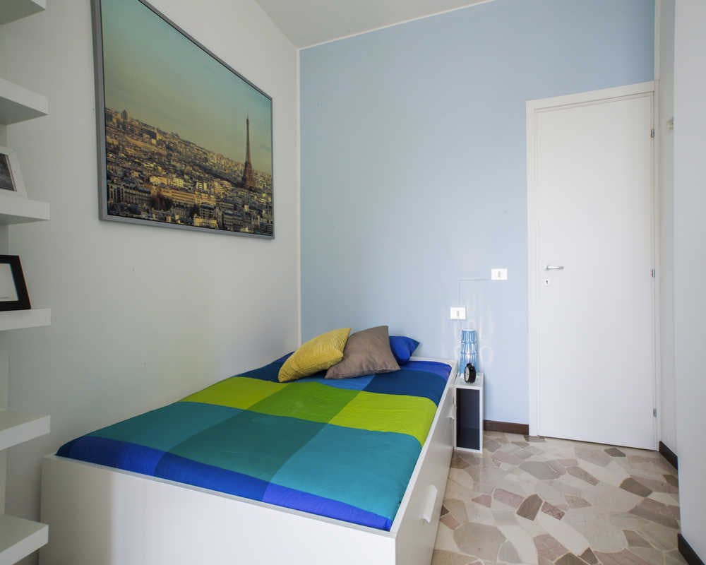 Single room in a shared apartment, composed by 4 bedrooms and 1 bathroom. Of about 17 sqm with a one and a half bed and a work station. With wifi, concierge services, dishwasher, washing machine. Energy class: G, IPE 445.51 Kwh/Sqm year. Current tenants: 1: 24, Male, Worker 2: 25, Male, Worker 3: 27, Male, Student Please be aware that HousingAnywhere is an online booking platform. Therefore exchanging contact details and offering viewings is not possible. If you would like to reserve this accommodation, send me a booking request or a message and please mention your age and occupation. I look forward to talking to you! CONTRACT Please, note that to all our listings we apply fortnightly contracts. This means that If you check-in during the first half of the month, you will be charged for the full month. If you check-in during the second half of the month, you will only be charged for the second half. The second half of the month starts on the 16th. If you check-out during the first half of the month, you will only pay until the 15th of that month. If you check-out during the second half of the month, you will be charged the full month....