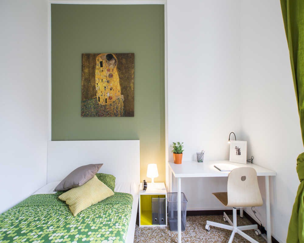 Single room in a shared apartment, composed by 9 bedrooms and 3 bathrooms. Of about 16 sqm with a one and a half bed and a work station. With wifi, dishwasher, washing machine. Energy class: E, IPE 106.81 Kwh/Sqm year. Current tenants: 1: 32, Female, Student 3: 26, Male, Student 5: 24, Male, Student 7: 21, Male, Student 8: 25, Female, Student 9: 32, Male, Worker Please be aware that HousingAnywhere is an online booking platform. Therefore exchanging contact details and offering viewings is not possible. If you would like to reserve this accommodation, send me a booking request or a message and please mention your age and occupation. I look forward to talking to you! CONTRACT Please, note that to all our listings we apply fortnightly contracts. This means that If you check-in during the first half of the month, you will be charged for the full month. If you check-in during the second half of the month, you will only be charged for the second half. The second half of the month starts on the 16th. If you check-out during the first half of the month, you will only pay until the 15th of that month. If you check-out during the second half of the month, you will be charged the full month....