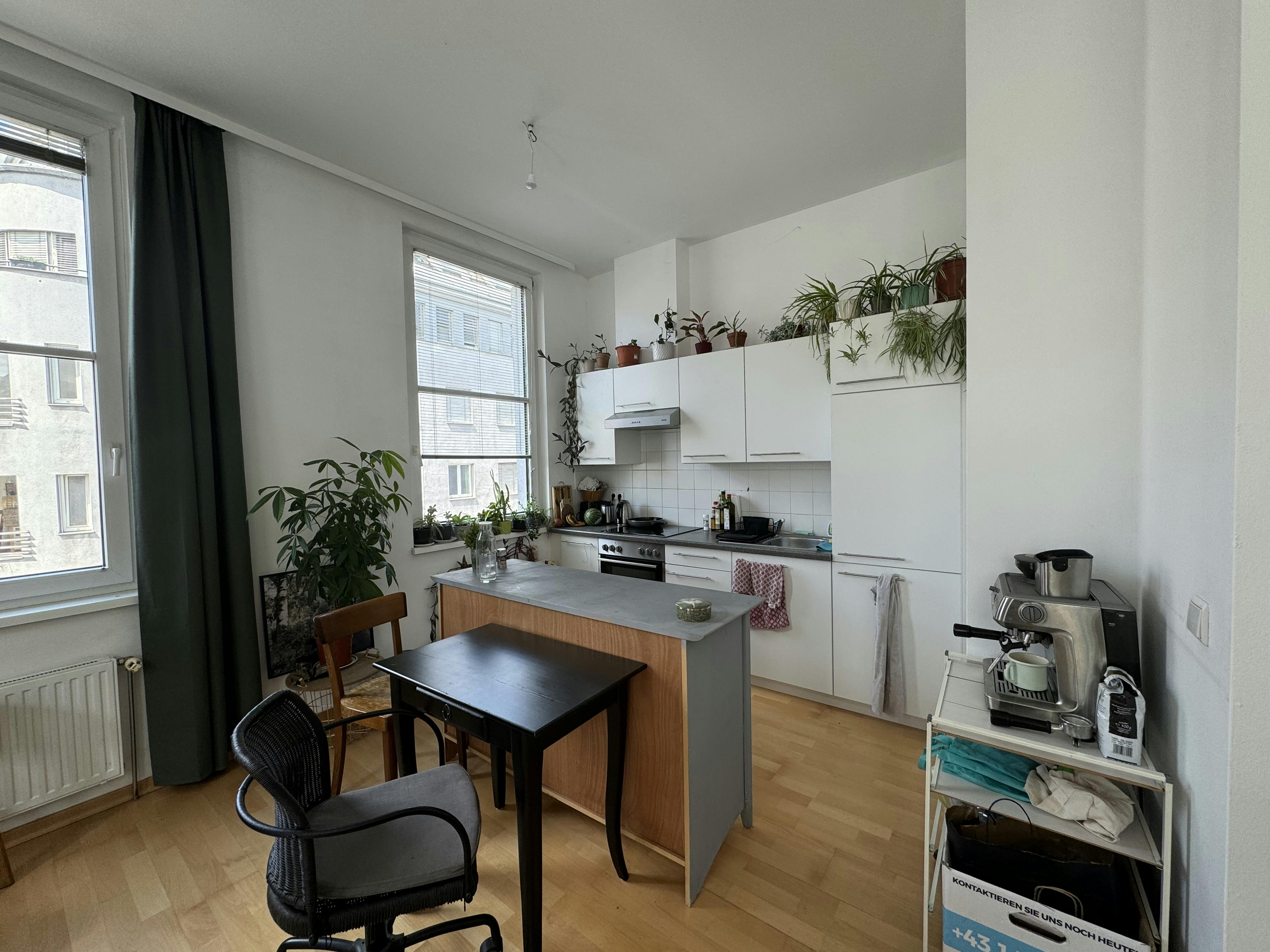 temporary sublet available 14.9. - 18.10. Lovely apartment for 1-2 persons. I am abroad for studies so I'm looking for someone trustworthy who takes good care of the space and maybe even my plants. It's located very central close to HBF. Public transport, shops etc everything is super close. There is one bedroom with a closet, a bathroom, an extra toilet. The open kitchen is part of a spacious living room, with a sofa area, a desk and some open floor, perfect for doing some yoga ;) I have an extra bike I could borrow you, in case you need one ;)...