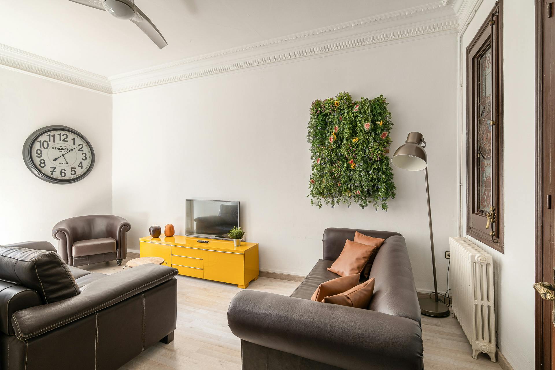 ✨ RENTAL CONDITIONS: The minimum stay is 32 nights and the maximum is 330 nights. De noviembre de 2025 a noviembre 2026 habrá un poco de ruido debido a la instalación de un ascensor en la finca. - Landlord's Other Fee: 18% of the total rental value (amount of 1 month calculated in the Rent Summary as "Other". The total amount of the full stay will be charged at the move-in date) - Deposit (refundable) to be indicated depending on the stay length. SPECTACULAR APARTMENT AT PLAZA ESPANYA Magnificent apartment available for monthly rent in Sants-Montjuïc. This classic luxury residence is designed with an eclectic, ethnic style that creates a stunning contrast with its original features, including high ceilings with intricate moldings and beautiful arched doorways. The spacious living room features a playful collection of decorative elements of distinct styles: a 70 ́s style carpet, a unique green framed plant on the wall, an oversized wooden cut-out of the African continent, and 2 black Chesterfield couches for a touch of British refinement. The apartment comes with 3 spectacular double bedrooms, each decorated with exquisite style, as well as a smaller single bedroom perfect for a child. We especially love the bedroom with 2 single beds, a bright red designer sofa, and the frames of the 3 beds that originally occupied this room converted into a creative wall ornament. The accommodation also includes a stunning dining room, an enormous kitchen equipped with everything you may possibly need to cook, and 2 spa-like bathrooms, one of which comes bathed in a dreamy light beige color. Just steps away from the major transportation hub Plaza de España, you will have quick access to the rest of the city by metro, bus, or train. The main attraction in this area is the Museu Nacional d'Art de Catalunya, situated at the top of Montjuïc Hill, a great point from which to enjoy amazing views of Barcelona and the Magic Fountain. You will also be close to the Fira de Barcelona and the Las Arenas shopping center, housed in a former bullfighting arena. 8.-Arrivals policy: Monday to Friday: 15h - 18:30: Free of charge 18:30 - 21:00: 30€ 21:00 - 23:00: 50€ 23h or after: under request Weekends and public holidays: 15h - 21:00: 30€ 21:00 - 23:00: 50€ 23h or after: under request ** From 10:00 p.m. at 8:00 am. you must be quiet. Parties not allowed. Smoking not allowed. If the police come to the apartment or the neighbors call the Government/Police, you will be evicted from the apartment and/or have to pay a fine. - The apartment does not have any food (there is no coffee, salt, oil, sugar). - We provide guests with a kit of welcome amenities (1-2 toilet rolls, neutral soap in small quantities - they are not for the entire stay). There are always towels and sheets. Cats are not allowed...