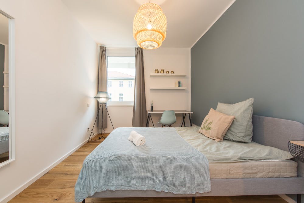 Welcome to our beautiful newly renovated apartments, where you bring the spirit and we take care of the rest! Our large number of co-living apartments all consist of spacious and bright rooms in a modern design. The best part is, everything is already fully furnished. In other words, you can literally grab your suitcase and move in tomorrow! Additionally, not only all of the rooms are already equipped with the essentials like electricity, water and internet, but we also offer numerous other facilities that are included in the price. Whether you would like to do sports in our fitness rooms, study in the coworking areas or socialise during organised workshops and events; we have it all! We are located in ‘Wedding’, which has become one of the trendiest areas in Berlin, throughout recent years. With countless bars, restaurants and shops right around the corner, this district has everything you may need within walking distance. Furthermore, due to its central location, all other exciting parts of Berlin can easily be reached by public transportation, with U6 and U9 lines arriving at the Leopoldplatz (2-mintue walk) on a regular basis. With open-minded and international people this place will not only provide you with an amazing new home, but you will also be part of our international and open-minded community, that you do not want to miss out on. Services / facilities that are INCLUDED in the price: - heating, electricity, water - high speed internet - fitness room - community area - working spaces - gaming area - security (camera surveillance) - outdoor areas that can be used as sports facilities - bicycle parking spaces - community manager - great location - *laundry room (including washing machine & dryer) *Please note that although a common laundry room is included in the price, the costs per washing cycle / program are paid individually (2,80€ washing machine & 2,50€ dryer) and are therefore not included in the overall price. Additional services / facilities that are NOT INCLUDED in the price: - parking space (can be booked on request) What exactly does “fully equipped” mean? Being able to move into a new place the next day does not happen very often, yet we make it possible! Therefore, we have not only taken care of all the necessary amenities, but these are also included in the price and do not involve any additional charges. To give you an overview of your new home, we have listed all of the integrated facilities below: The apartment: • equipped kitchen • oven • dishwasher • *balcony / terrace The bedroom: • wardrobe • desk • chair • mirror • lamp • bed (140 cm) • mattress • blanket • pillow • curtains • floor lamp • shelf • drawer • heating unit *Please note that these are example pictures. All Listings differ in Floor level. Not all of the rooms have a balcony or terrace. Furthermore, those that do are sometimes shared and therefore more than one room may have access to the same balcony. The exact details of each individual room,within the apartment can be seen on the according floorplan, which is included in the pictures. REQUIRED documents: - Proof of income (last 3 months) or work contract - Proof of enrolment (students) - Guarantor (only if you do not have proof of income) - Copy of guarantor's ID (only if you do not have proof of income) - Copy of guarantor's work contract (only if you do not have proof of income) *the landlord only accepts tenants under the age of 40* Check-in /out: - Check-in hours: Monday - Friday from 10:00 - 16:00 - The key transfer will take place at Village M (you will receive the address once your booking is confirmed) Please be aware once the booking is done on HousingAnywhere we will provide you with the contract. In order for you to get your keys, the deposit must be transferred to our bank account...