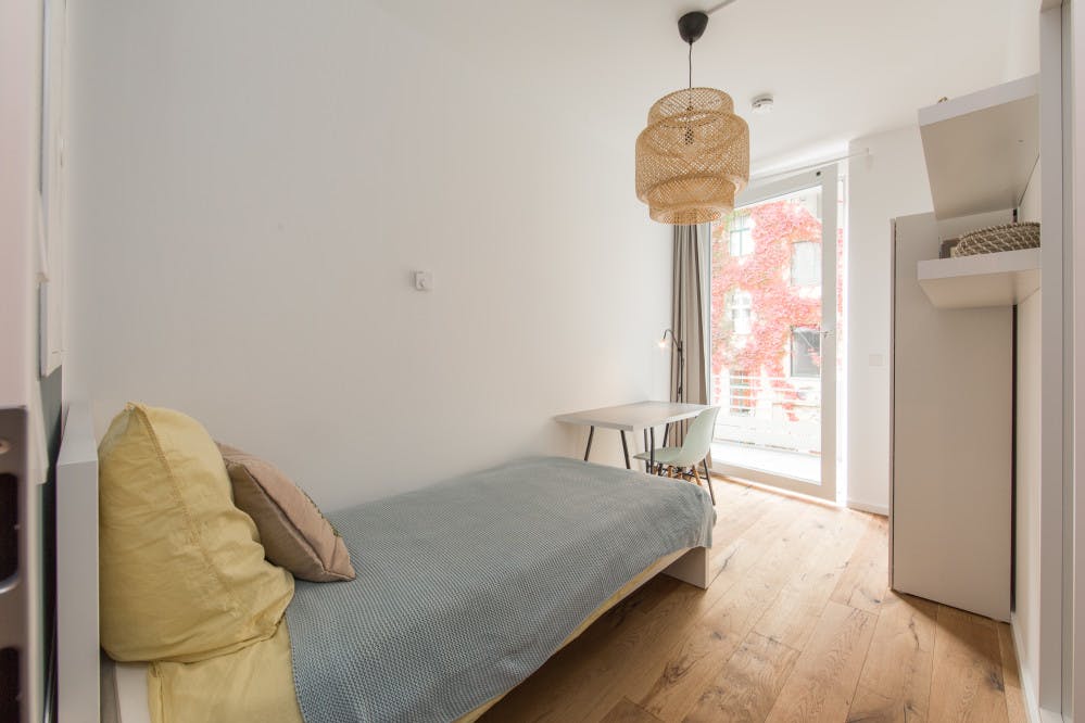 Welcome to our beautiful newly renovated apartments, where you bring the spirit and we take care of the rest! Our large number of co-living apartments all consist of spacious and bright rooms in a modern design. The best part is, everything is already fully furnished. In other words, you can literally grab your suitcase and move in tomorrow! Additionally, not only all of the rooms are already equipped with the essentials like electricity, water and internet, but we also offer numerous other facilities that are included in the price. Whether you would like to do sports in our fitness rooms, study in the coworking areas or socialise during organised workshops and events; We have it all! We are located in ‘Wedding’, which has become one of the trendiest areas in Berlin, throughout recent years. With countless bars, restaurants and shops right around the corner, this district has everything you may need within walking distance. Furthermore, due to its central location, all other exciting parts of Berlin can easily be reached by public transportation, with U6 and U9 lines arriving at the Leopoldplatz (2-mintue walk) on a regular basis. With open-minded and international people this place will not only provide you with an amazing new home, but you will also be part of our international and open-minded community, that you do not want to miss out on. Services / facilities that are INCLUDED in the price: - heating, electricity, water - high speed internet - fitness room - community area - working spaces - gaming area - security (camera surveillance) - outdoor areas that can be used as sports facilities - bicycle parking spaces - community manager - great location - *laundry room (including washing machine & dryer) *Please note that although a common laundry room is included in the price, the costs per washing cycle / program are paid individually (2,80€ washing machine & 2,50€ dryer) and are therefore not included in the overall price. Additional services / facilities that are NOT INCLUDED in the price: - parking space (can be booked on request) What exactly does “fully equipped” mean? Being able to move into a new place the next day does not happen very often, yet we make it possible! Therefore, we have not only taken care of all the necessary amenities, but these are also included in the price and do not involve any additional charges. To give you an overview of your new home, we have listed all of the integrated facilities below: The apartment: • equipped kitchen • oven • *balcony / terrace The bedroom: • wardrobe • desk • chair • mirror • lamp • bed • mattress • blanket • pillow • curtains • floor lamp • shelf • drawer • heating unit *Please note that these are example pictures. All Listings differ in Floor level. Not all of the rooms have a balcony or terrace. Furthermore, those that do are sometimes shared and therefore more than one room may have access to the same balcony. The exact details of each individual room,within the apartment can be seen on the according floorplan, which is included in the pictures. REQUIRED documents: - Proof of income (last 3 months) or work contract - Proof of enrolment (students) - Guarantor (only if you do not have proof of income) - Copy of guarantor's ID (only if you do not have proof of income) - Copy of guarantor's work contract (only if you do not have proof of income) *the landlord only accepts tenants under the age of 40* Check-in /out: - Check-in hours: Monday - Friday from 10:00 - 16:00 - You will receive the exact address for the key transfer once your booking is confirme...