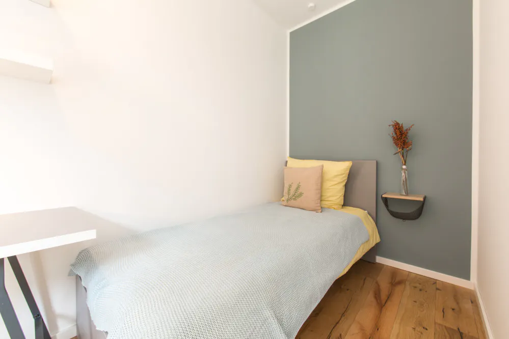 Welcome to our beautiful newly renovated apartments, where you bring the spirit and we take care of the rest! Our large number of co-living apartments all consist of spacious and bright rooms in a modern design. The best part is, everything is already fully furnished. In other words, you can literally grab your suitcase and move in tomorrow! Additionally, not only all of the rooms are already equipped with the essentials like electricity, water and internet, but we also offer numerous other facilities that are included in the price. Whether you would like to do sports in our fitness rooms, study in the coworking areas or socialise during organised workshops and events; we have it all! We are located in ‘Wedding’, which has become one of the trendiest areas in Berlin, throughout recent years. With countless bars, restaurants and shops right around the corner, this district has everything you may need within walking distance. Furthermore, due to its central location, all other exciting parts of Berlin can easily be reached by public transportation, with U6 and U9 lines arriving at the Leopoldplatz (2-mintue walk) on a regular basis. With open-minded and international people this place will not only provide you with an amazing new home, but you will also be part of our international and open-minded community, that you do not want to miss out on. Services / facilities that are INCLUDED in the price: - heating, electricity, water - high speed internet - fitness room - community area - working spaces - gaming area - security (camera surveillance) - outdoor areas that can be used as sports facilities - bicycle parking spaces - community manager - great location - *laundry room (including washing machine & dryer) *Please note that although a common laundry room is included in the price, the costs per washing cycle / program are paid individually (2,80€ washing machine & 2,50€ dryer) and are therefore not included in the overall price. Additional services / facilities that are NOT INCLUDED in the price: - parking space (can be booked on request) What exactly does “fully equipped” mean? Being able to move into a new place the next day does not happen very often, yet we make it possible! Therefore, we have not only taken care of all the necessary amenities, but these are also included in the price and do not involve any additional charges. To give you an overview of your new home, we have listed all of the integrated facilities below: The apartment: • equipped kitchen • oven • dishwasher • *balcony / terrace The bedroom: • wardrobe • desk • chair • mirror • lamp • bed (90 cm) • mattress • blanket • pillow • curtains • floor lamp • shelf • drawer • heating unit *Please note that not all of the rooms have a balcony or terrace. Furthermore, those that do are sometimes shared and therefore more than one room may have access to the same balcony. The exact details of each individual room within the apartment can be seen on the according floorplan, which is included in the pictures. REQUIRED documents: - Proof of income (last 3 months) or work contract - Proof of enrolment (students) - Guarantor (only if you do not have proof of income) - Copy of guarantor's ID (only if you do not have proof of income) - Copy of guarantor's work contract (only if you do not have proof of income) *the landlord only accepts tenants under the age of 40* Check-in /out: - Check-in hours: Monday - Friday from 10:00 - 16:00 - The key transfer will take place at Village M (you will receive the address once your booking is confirmed...