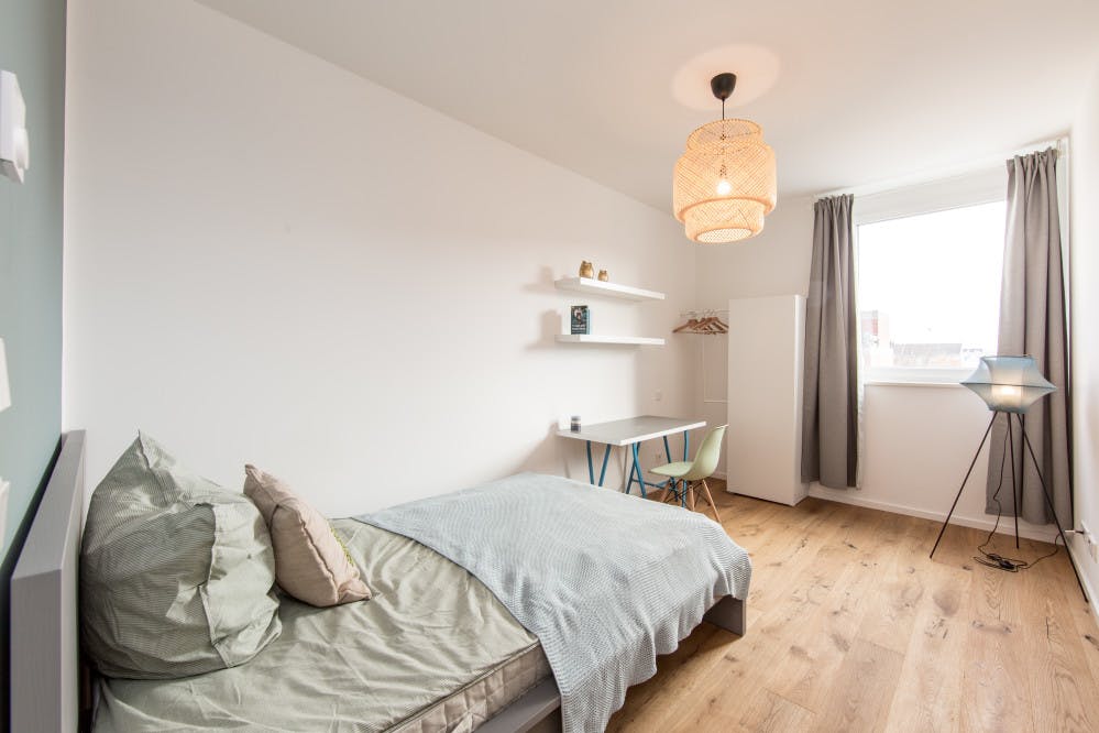 Welcome to our beautiful newly renovated apartments, where you bring the spirit and we take care of the rest! Our large number of co-living apartments all consist of spacious and bright rooms in a modern design. The best part is, everything is already fully furnished. In other words, you can literally grab your suitcase and move in tomorrow! Additionally, not only all of the rooms are already equipped with the essentials like electricity, water and internet, but we also offer numerous other facilities that are included in the price. Whether you would like to do sports in our fitness rooms, study in the coworking areas or socialise during organised workshops and events; Village M has it all! We are located in ‘Wedding’, which has become one of the trendiest areas in Berlin, throughout recent years. With countless bars, restaurants and shops right around the corner, this district has everything you may need within walking distance. Furthermore, due to its central location, all other exciting parts of Berlin can easily be reached by public transportation, with U6 and U9 lines arriving at the Leopoldplatz (2-mintue walk) on a regular basis. With open-minded and international people this place will not only provide you with an amazing new home, but you will also be part of our international and open-minded community, that you do not want to miss out on. Services / facilities that are INCLUDED in the price: - heating, electricity, water - high speed internet - fitness room - community area - working spaces - gaming area - security (camera surveillance) - outdoor areas that can be used as sports facilities - bicycle parking spaces - community manager - great location - *laundry room (including washing machine & dryer) *Please note that although a common laundry room is included in the price, the costs per washing cycle / program are paid individually (2,80€ washing machine & 2,50€ dryer) and are therefore not included in the overall price. What exactly does “fully equipped” mean? Being able to move into a new place the next day does not happen very often, yet we make it possible! Therefore, we have not only taken care of all the necessary amenities, but these are also included in the price and do not involve any additional charges. To give you an overview of your new home, we have listed all of the integrated facilities below: The apartment: • equipped kitchen • oven • *balcony / terrace The bedroom: • wardrobe • desk • chair • mirror • lamp • bed (140 cm) • mattress • blanket • pillow • curtains • floor lamp • shelf • drawer • heating unit *Please note that these are example pictures. All Listings differ in Floor level. Not all of the rooms have a balcony or terrace. Furthermore, those that do are sometimes shared and therefore more than one room may have access to the same balcony. The exact details of each individual room,within the apartment can be seen on the according floorplan, which is included in the pictures. REQUIRED documents (AFTER BOOKING IS CONFIRMED): - Proof of income (last 3 months) or work contract - Proof of enrolment (students) - Guarantor (only if you do not have proof of income) - Copy of guarantor's ID (only if you do not have proof of income) - Copy of guarantor's work contract (only if you do not have proof of income) *the landlord only accepts tenants under the age of 40* Check-in /out: - Check-in hours: Monday - Friday from 10:00 - 16:00 - The key transfer will take place at Village M (you will receive the address once your booking is confirmed) Please be aware once the booking is done on HousingAnywhere we will provide you with the contract. In order for you to get your keys, the deposit must be transferred to our bank account. IMPORTANT!!! Please take into account that the decoration is solely included for inspirational purposes and will not be present in your room...