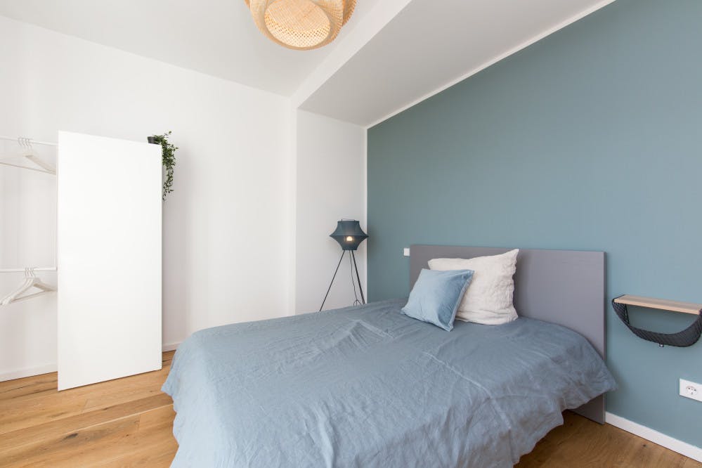 Welcome to our beautiful newly renovated apartments, where you bring the spirit and we take care of the rest! Our large number of co-living apartments all consist of spacious and bright rooms in a modern design. The best part is, everything is already fully furnished. In other words, you can literally grab your suitcase and move in tomorrow! Additionally, not only all of the rooms are already equipped with the essentials like electricity, water and internet, but we also offer numerous other facilities that are included in the price. Whether you would like to do sports in our fitness rooms, study in the coworking areas or socialise during organised workshops and events; We have it all! We are located in ‘Wedding’, which has become one of the trendiest areas in Berlin, throughout recent years. With countless bars, restaurants and shops right around the corner, this district has everything you may need within walking distance. Furthermore, due to its central location, all other exciting parts of Berlin can easily be reached by public transportation, with U6 and U9 lines arriving at the Leopoldplatz (2-mintue walk) on a regular basis. With open-minded and international people this place will not only provide you with an amazing new home, but you will also be part of our international and open-minded community, that you do not want to miss out on. Services / facilities that are INCLUDED in the price: - heating, electricity, water - high speed internet - fitness room - community area - working spaces - gaming area - security (camera surveillance) - outdoor areas that can be used as sports facilities - bicycle parking spaces - community manager - great location - *laundry room (including washing machine & dryer) *Please note that although a common laundry room is included in the price, the costs per washing cycle / program are paid individually (2,80€ washing machine & 2,50€ dryer) and are therefore not included in the overall price. Additional services / facilities that are NOT INCLUDED in the price: - parking space (can be booked on request) What exactly does “fully equipped” mean? Being able to move into a new place the next day does not happen very often, yet we make it possible! Therefore, we have not only taken care of all the necessary amenities, but these are also included in the price and do not involve any additional charges. To give you an overview of your new home, we have listed all of the integrated facilities below: The apartment: • equipped kitchen • oven • *balcony / terrace The bedroom: • wardrobe • desk • chair • mirror • lamp • bed • mattress • blanket • pillow • curtains • floor lamp • shelf • drawer • heating unit *Please note that not all of the rooms have a balcony or terrace. Furthermore, those that do are sometimes shared and therefore more than one room may have access to the same balcony. The exact details of each individual room within the apartment can be seen on the according floorplan, which is included in the pictures. REQUIRED documents: - Proof of income (last 3 months) or work contract - Proof of enrolment (students) - Guarantor (only if you do not have proof of income) - Copy of guarantor's ID (only if you do not have proof of income) - Copy of guarantor's work contract (only if you do not have proof of income) *the landlord only accepts tenants under the age of 35* Check-in /out: - Check-in hours: Monday - Friday from 10:00 - 16:00 - You will receive the exact address for the key transfer once your booking is confirmed Please be aware once the booking is done on HousingAnywhere we will provide you with the contract. In order for you to get your keys, the deposit must be transferred to our bank account...