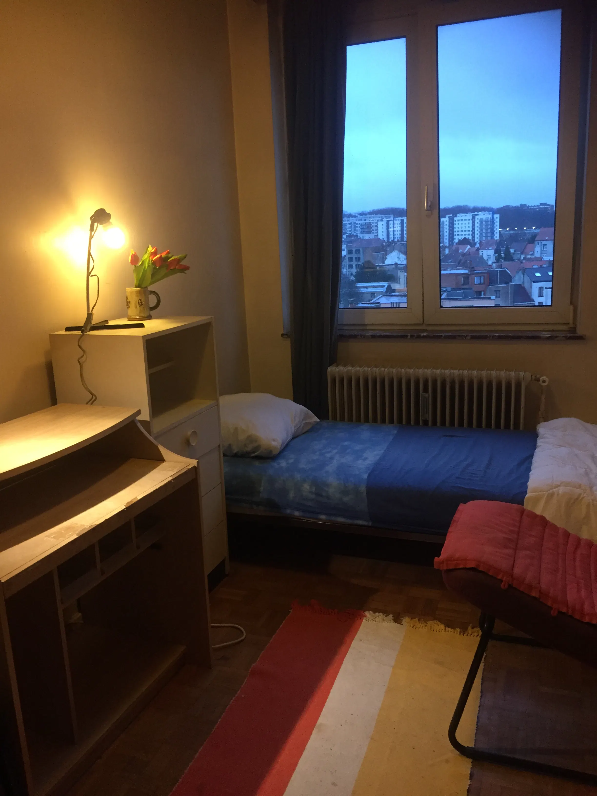Nice large room 35 sqm, furnished, in a nice safe area, near EU/NATO are(hidden)russels, apartment to share with 2 kind flatmates, easy doing. a lot of public transport afront of the building. supermarkets, restaurants, bars, park in the neighbours...