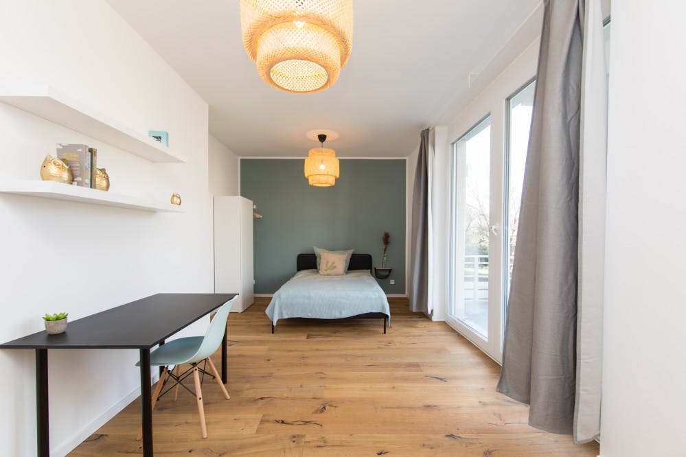 Welcome to our beautiful newly renovated apartments, where you bring the spirit and we take care of the rest! Our large number of co-living apartments all consist of spacious and bright rooms in a modern design. The best part is, everything is already fully furnished. In other words, you can literally grab your suitcase and move in tomorrow! Additionally, not only all of the rooms are already equipped with the essentials like electricity, water and internet, but we also offer numerous other facilities that are included in the price. Whether you would like to do sports in our fitness rooms, study in the coworking areas or socialise during organised workshops and events; we have it all! We are located in ‘Wedding’, which has become one of the trendiest areas in Berlin, throughout recent years. With countless bars, restaurants and shops right around the corner, this district has everything you may need within walking distance. Furthermore, due to its central location, all other exciting parts of Berlin can easily be reached by public transportation, with U6 and U9 lines arriving at the Leopoldplatz (2-mintue walk) on a regular basis. With open-minded and international people this place will not only provide you with an amazing new home, but you will also be part of our international and open-minded community, that you do not want to miss out on. Services / facilities that are INCLUDED in the price: - heating, electricity, water - high speed internet - fitness room - community area - working spaces - gaming area - security (camera surveillance) - outdoor areas that can be used as sports facilities - bicycle parking spaces - community manager - great location - *laundry room (including washing machine & dryer) *Please note that although a common laundry room is included in the price, the costs per washing cycle / program are paid individually (2,80€ washing machine & 2,50€ dryer) and are therefore not included in the overall price. Additional services / facilities that are NOT INCLUDED in the price: - parking space (can be booked on request) What exactly does “fully equipped” mean? Being able to move into a new place the next day does not happen very often, yet we make it possible! Therefore, we have not only taken care of all the necessary amenities, but these are also included in the price and do not involve any additional charges. To give you an overview of your new home, we have listed all of the integrated facilities below: The apartment: • equipped kitchen • oven • *balcony / terrace The bedroom: • wardrobe • desk • chair • mirror • lamp • bed (140 cm) • mattress • blanket • pillow • curtains • floor lamp • shelf • drawer • heating unit • private balcony / terrace *Please note that these are example pictures. All Listings differ in Floor level. Not all of the rooms have a balcony or terrace. Furthermore, those that do are sometimes shared and therefore more than one room may have access to the same balcony. The exact details of each individual room,within the apartment can be seen on the according floorplan, which is included in the pictures. REQUIRED documents (AFTER BOOKING IS CONFIRMED): - Proof of income (last 3 months) or work contract - Proof of enrolment (students) - Guarantor (only if you do not have proof of income) - Copy of guarantor's ID (only if you do not have proof of income) - Copy of guarantor's work contract (only if you do not have proof of income) *the landlord only accepts tenants under the age of 40* Check-in /out: - Check-in hours: Monday - Friday from 10:00 - 16:00 - The key transfer will take place at Village M (you will receive the address once your booking is confirmed) Please be aware once the booking is done on HousingAnywhere we will provide you with the contract. In order for you to get your keys, the deposit must be transferred to our bank account...