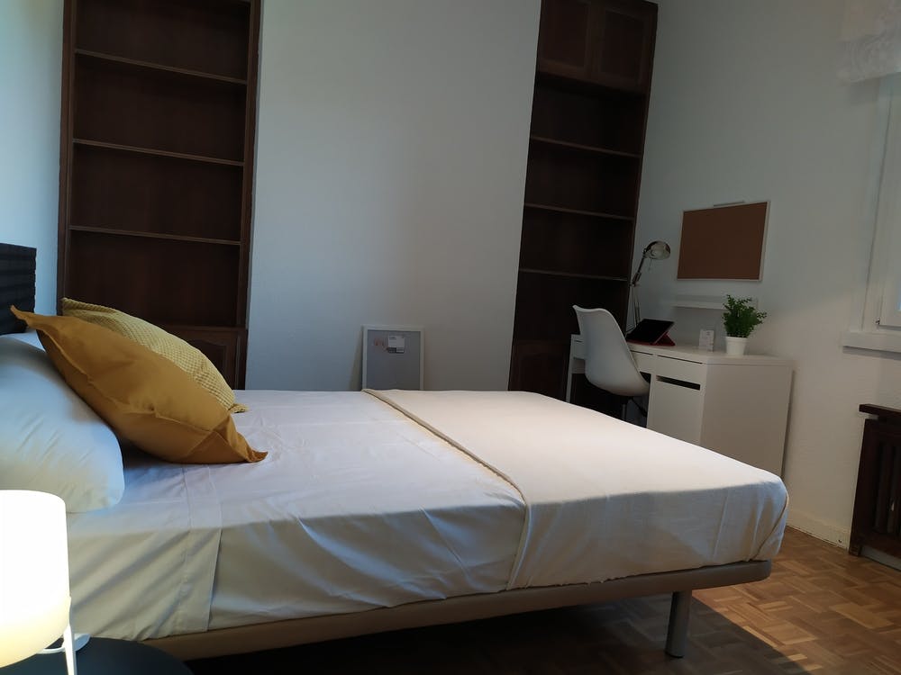 HABITACIÓN CON CAMA DE MATRIMONIO La habitación cuenta con cama matrimonio, zona de escritorio y armario. El apartamento cuenta con cocina completamente equipada, 2 baños compartidos por un máximo de 7 personas. Nuestro coliving está enfocado a estudiantes y jóvenes profesionales, generalmente entre 18 y 40 años, y ambiente internacional. Buscamos que disfrutes de Madrid y que tu estancia sea cómoda, por lo que nuestros asesores te ayudaran ante cualquier duda. Al hacer tu reserva queremos que disfrutes con nosotros, estés cómodo y cuentes con nuestro equipo y comunidad, por ello no solo te ofrecemos un alquiler, sino que alojándote con nosotros: -Formarás parte de nuestra comunidad, teniendo acceso a eventos y actividades semanales para que descubras Madrid y te sientas como en casa siendo uno más. -Limpieza semanal de las zonas comunes. -Servicio de mantenimiento. -Posibilidad de empadronamiento (City registration) para estancias a partir de 6 meses -Servicio Medico 24/7 por Quirón Salud -Atención al cliente 24/7 a través de nuestro departamento de Atención al coliver -Invitación a eventos y actividades especiales Condiciones: -Un mes de Fianza - Membership Club -Suministros incluidos en el precio como electricidad, agua, calefacción y internet de alta velocidad (hasta un máximo de 70€ ) -Consultar estancia mínima -De documentación únicamente solicitamos DNI o pasaporte Nuestro coliving está enfocado a estudiantes y jóvenes profesionales que quieren disfrutar de una estancia en Madrid. La ubicación es inmejorable en la zona de Aluche. Bien comunicado, se encuentran edificios de gran importancia cultural y de ocio, y cerca de la parada de metro de Puerta del Ángel, línea 6 de Metro, que conecta directamente con importantes zonas de Madrid. Además, cuenta con numerosas paradas de autobuses con excelentes conexiones por toda la ciudad rodeado de restaurantes, cafés y tiendas. Check in: Lunes - Domingo: 15:00 - 24:00 Check-out: Antes de las 11:00 📅 CONTRATO QUINCENAL En el mes de entrada o de salida: - Si te quedas 14 días o menos, pagarás la mitad del alquiler de ese mes. - Si te quedas más de 14 días, pagarás el alquiler del mes completo. (El importe a pagar de cada mes aparece calculado en el resumen de pagos) 💵 Payments before the check-in: Once the reservation is confirmed, you will be required to make the additional payments (security deposit, etc.) through our secure payment system before the move-in date...