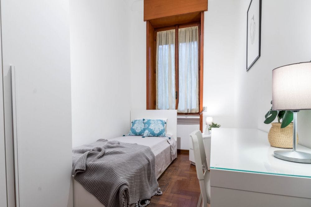 Charming flat in Milan, Viale Regina Margherita, in the heart of the historic center This large, elegant, and cozy flat is located in a strategic area of Milan, just steps from the historical center, the University of Milan, IED (European Institute of Design), and the Catholic University. The neighborhood offers everything you need, including supermarkets, restaurants, and numerous museums for art lovers. The flat is spacious and welcoming, situated on the third floor of an elegant building with elevator. It features an entrance hall, a fully equipped kitchen with two large refrigerators, two bathrooms with bath and shower, two single bedrooms, and two double bedrooms. Balconies throughout the flat fill the space with natural light, making it bright and pleasant. A few minutes from the main Milanese university campuses: - IED (Amatore Sciesa) 7 minutes walk; - UNIMI (Via Conservatorio) 12 minutes walk; - UNIMI (Via Festa del Perdono) 14 minutes walk; - Cattolica 20 minutes by tram number16; - Bocconi 20 minutes by tram number 9; - POLIMI 20 minutes by tram number19. The area is home to several supermarkets, shops and services for any need. Strategic location that allows you to enjoy the many activities that Milan has to offer. You will be able to explore the city not only by walk, but also thanks to a great public transportation network: - Tram lines (hidden) minutes walk from the house; - Metro red line San Babila, 15 minutes walking distance. Milan, Italy's fashion capital, is among the trendiest destinations in Europe for its historical heritage, culinary innovations and visionary designers. Its enchanting elegant palaces and tree-lined boulevards perfectly match with the greatest fashion boutiques. Milan is also home to countless restaurants and clubs that enliven the city all year round and also priceless historical monuments such as: Duomo, Castello Sforzesco, Quadrilatero della Moda, Galleria Vittorio Emanuele, Palazzo Reale and Cenacolo Vinciano. - Don't smoke - Pets are not allowed - Parties are forbidden - Take out the trash daily - Short-term visits are allowed Elegant single room in Viale Regina Margherita Perfect room for a young worker or a student who loves to live in intimacy and tranquility. Cozy and warm, this room has a single bed with drawers, a bedside table, a double door wardrobe and a desk with a lamp. The window, which illuminates the room, overlooks a prestigious and quiet courtyard. Inside the room there is air conditioning. ALL BILLS ARE INCLUDED up to 50 euro of expenses per month (if you will do a normal amount of usage, you would not have to pay for it!). After the payment of the first month rent on HousingAnywhere, to finalize the reservation, the tenant has to pay the deposit and the admin fee. The admin fee covers: -weekly cleaning service of the common areas for the entire duration of the contract; - contract registration fees (registration tax, stamps and registration fee); -maintenance. Contracts can’t end on 30 of April - 31 of May - 30 of June. Cancelling contract in advance is possible with three months notice period only after three months contract. If you cancel the contract before the natural ending you have to pay 200€ penalty...