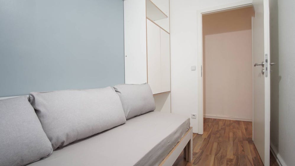 Diesen Zimmer hat ca. 9qm und befindet sich in einer 5er WG. Dies 95 m2 große Immobilie ist mit Zentralheizung ausgestattet und verfügt über 1 Gemeinschaftsbad und eine voll ausgestattete Küche mit Ofen und Geschirrspüler. Die Wohnung befindet sich in einer ruhigen Straße in Wedding, aber in nur wenigen Minuten erreichst Du Bars, Café und Restaurants sowie auch U-Bahn, S-Bahn und Bus-Stationen. Der Volkspark Rehberge lädt zu Spaziergängen ein und eine kurze fahrt entfernt triffst Du auf die Club-Szene Berlins. This room has about 9sqm and is located in a shared flat for 5 people. This 95 m2 property is equipped with central heating and has 1 shared bathroom and a fully equipped kitchen with oven and dishwasher. The apartment is located in a quiet street in Wedding, but in just a few minutes you can reach bars, café and restaurants, as well as subway, S-Bahn and bus stations. The Volkspark Rehberge invites you for a walk and a short drive away you can meet the club scene of Berlin...