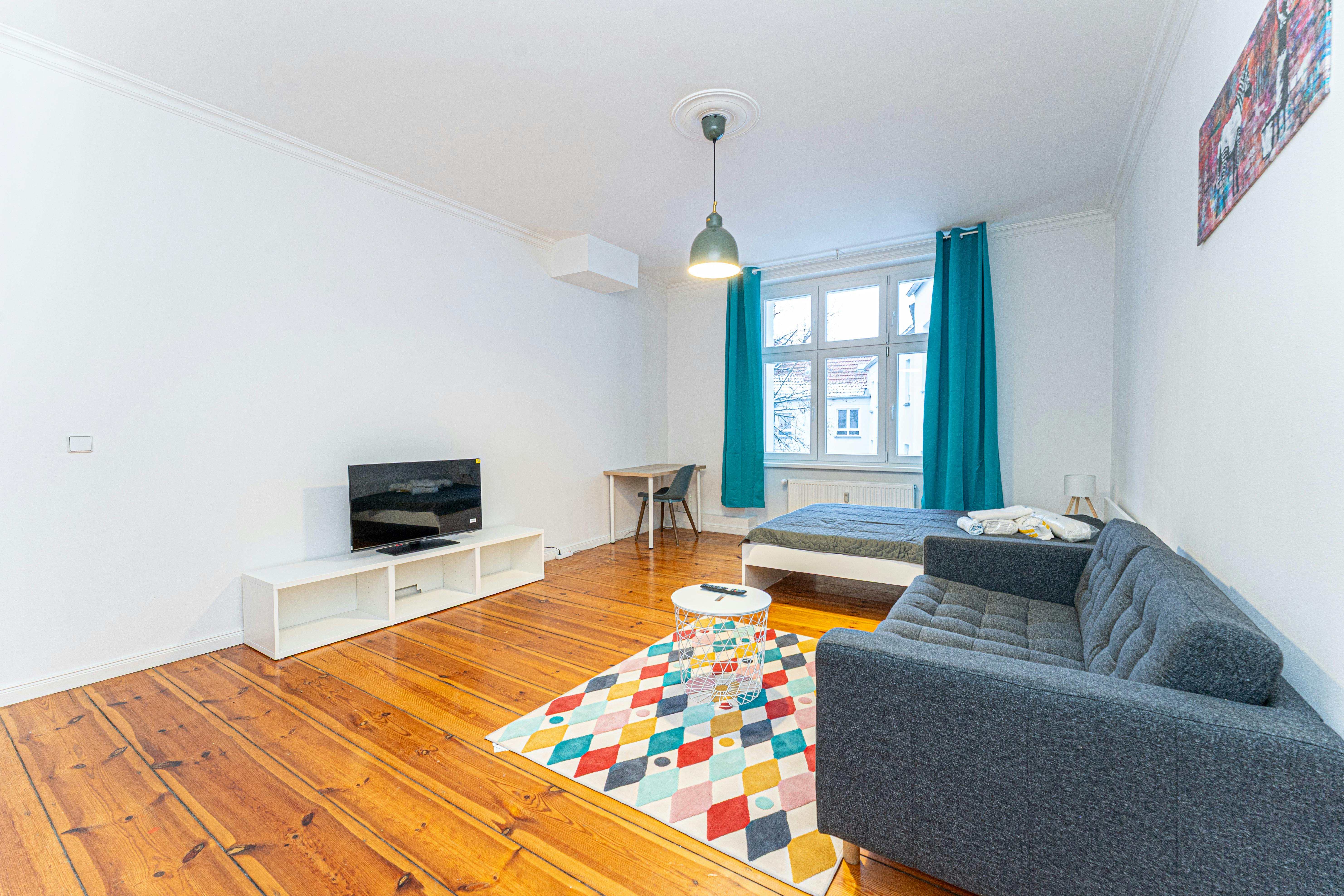 Please note: The building has been fully renovated. Minor finishing works may still be ongoing. Welcome to Your Urban Retreat in Friedrichshain Located in one of Berlin’s most vibrant and sought-after neighborhoods, this beautifully furnished apartment offers the perfect balance between urban living, comfort, and tranquility. Here, work, leisure, and everyday life blend seamlessly — everything you need is right at your doorstep. Excellent public transport connections are just a short walk away, including Ostkreuz station and several tram lines, ensuring fast and easy access to all parts of the city. About the Apartment This stylish 1-room apartment offers approx. 46 m2 of well-designed living space and is located on the 4th floor of the building. High ceilings and wooden floors create a bright and airy atmosphere, while the apartment comes fully furnished and move-in ready. Included in the monthly rent: High-speed internet Electricity Heating Water ✔️ No hidden or additional costs Move-out fee: Final inspection fee: €150 (payable at move-out) The Neighborhood – Boxhagener Straße Boxhagener Straße lies at the heart of Friedrichshain and perfectly reflects the district’s creative and alternative spirit. Cobblestone streets, charming historic facades, independent boutiques, galleries, cafés, and vintage stores define the area’s unique character. Just around the corner, Boxhagener Platz hosts a popular weekly flea market — a local highlight and meeting point for residents and visitors alike. From relaxed cafés during the day to lively restaurants and bars in the evening, the neighborhood offers an authentic Berlin lifestyle around the clock. Whether you are drawn by culture, creativity, or simply want to experience Berlin beyond the tourist paths, this area delivers it all. Important Information After booking via HousingAnywhere, we will send you the contract documents. The security deposit must be transferred to our bank account in order to proceed with the handover. Furniture may be renewed or replaced if necessary; therefore, minor deviations from the photos are possible. Should you have any questions or need further information, please do not hesitate to contact me. We look forward to welcoming you to your new home in Berlin...