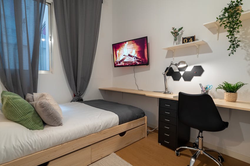 Beautiful room fully equipped with everything you need for your stay, it has a comfortable bed, desk, chair, closet, lamp and more. The room does not include sheets or pillows, only the cover for the mattress. Fantastic apartment in chamberí, kitchen with ceramic hob, oven, washing machine; living room and two complete bathrooms and another modern one with three sinks and three shower cabins. Modern apartment with cheerful decoration and painting. University area par excellence located next to the Moncloa interchange. A few minutes walk from the house are all the necessary services: supermarkets, bars, restaurants, doctors, gym, etc. Unbeatable situation for the students of the UCM UPM and all those who need to take the interurban bus in Moncloa (also line 3 and 6 of the subway) to go to their faculties. Come live now with students and young professionals, share your stories and discover new worlds. Private room equipped with desk and chair, bedside table, mirror, lamp, and closet. The bed does not include sheets and pillows, only the mattress cover. SERVICES AND RELEVANT INFORMATION: ✔Cleaning of common areas once a week. ✔Possibility of maintenance service. ✔Possibility of changing room or apartment to another in our portfolio. ✔Possibility of registration. ✔Customer service, consultations, and general issues during your stay. ✔Contract of minimum stay of 1 month and maximum of 12 months with the possibility of renewal. ✔Method of payment of all the costs: Bank transfer with all the amount paid before check-in. ✔Couples are not allowed ✔Pets are not allowed ✔No parties allowed on the property ✔No smoking allowed GENERAL CONDITIONS: ✔Deposit: 1 month's rent to be returned to you after the departure date (Rent + supplies). ✔Photographic inventory fee, to be paid only once before entering the room 64,15€ (Guarantees the return of the deposit to the owner by having photos of the state of the room, as it is delivered and returned). ✔Admin fee 453,75€ (393,25€ admin fee + 60,50€ asnef) - Check out fee 114,95€ - Check out fee 114,95€. ✔ID/Passport photo and bank details are required for the refund of the deposit at the end of the contract. CHECK-IN HOURS: ✔Monday to Friday 16:00 to 18:00 Free. ✔Monday to Friday 11:00 to 13:00 90,75€. ✔Monday to Friday 18:00 to 22:00 90,75€. ✔Monday to Friday 22:00 to 10:00 151,25€ ✔Weekends and Holidays 90,75€. Once your reservation is paid you will receive a unique welcome email from your landlord with all the information and instructions you need and where you will be asked for your personal documentation and bank details to make the rental contract. IT IS VERY IMPORTANT THAT YOU INDICATE CORRECTLY YOUR PHONE NUMBER AND EMAIL TO AVOID THAT THEY CAN NOT CONTACT YOU AND RUN THE RISK OF LOSING THE RESERVATION. If the owner does not receive all the necessary documentation previously requested by email and the payment of the total amount before check-in, you will have to pay an additional 181,50€ for a last-minute contract. Days before the move you will be contacted to arrange the check-in time. THE TENANT MUST NOT APPEAR IN THE CONTROL OF DELINQUENCY, OTHERWISE THE RESERVATION IS AT RISK. ⚠️ATTENTION: If the reservation is made on THE SAME DAY, the check-in must be made at least 48 HOURS LATER. We cannot do same-day check-in. The contracts are bi-weekly, thus paying the full fortnight of the month according to the day of booking. If the Check-in is made from the 20th of the month onwards, the following month will also have to be paid to avoid two consecutive payments. Note: The monthly utility bill also covers basic house maintenance, and weekly cleaning service....