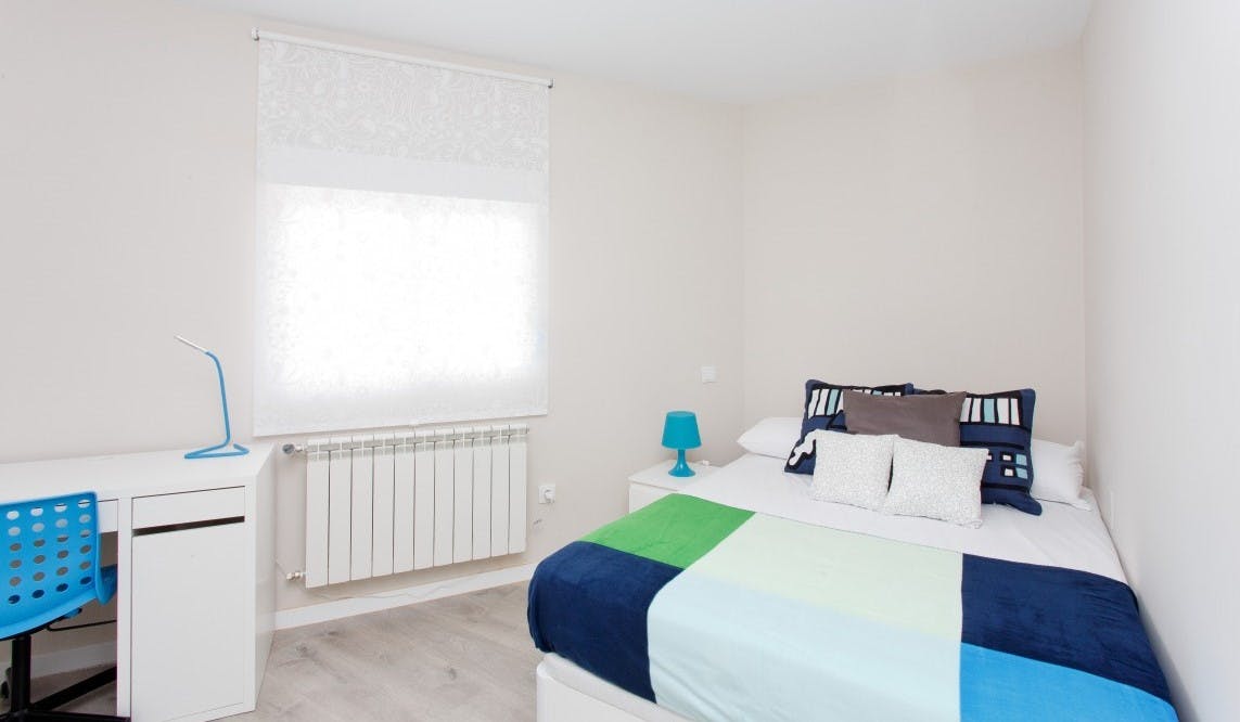 HABITACIÓN CON CAMA DE MATRIMONIO La habitación cuenta con cama matrimonio, zona de escritorio y armario. El apartamento cuenta con cocina completamente equipada, 1 baño compartidos por un máximo de 4 personas. Nuestro coliving está enfocado a estudiantes y jóvenes profesionales, generalmente entre 18 y 40 años, y ambiente internacional. Buscamos que disfrutes de Madrid y que tu estancia sea cómoda, por lo que nuestros asesores te ayudaran ante cualquier duda. Al hacer tu reserva queremos que disfrutes con nosotros, estés cómodo y cuentes con nuestro equipo y comunidad, por ello no solo te ofrecemos un alquiler, sino que alojándote con nosotros: -Formarás parte de nuestra comunidad, teniendo acceso a eventos y actividades semanales para que descubras Madrid y te sientas como en casa siendo uno más. -Limpieza semanal de las zonas comunes. -Servicio de mantenimiento. -Posibilidad de empadronamiento (City registration) para estancias a partir de 6 meses -Servicio Medico 24/7 por Quirón Salud -Atención al cliente 24/7 a través de nuestro departamento de Atención al coliver -Invitación a eventos y actividades especiales Condiciones: -Un mes de Fianza -Membership Club -Suministros incluidos en el precio como electricidad, agua, calefacción y internet de alta velocidad (hasta un máximo de 70€ ) -Consultar estancia mínima -De documentación únicamente solicitamos DNI o pasaporte Nuestro coliving está enfocado a estudiantes y jóvenes profesionales que quieren disfrutar de una estancia en Madrid. La ubicación es inmejorable en la zona de Bellas Vistas. Bien comunicado, se encuentran edificios de gran importancia cultural y de ocio, y cerca de la parada de metro de Estrecho, línea 1 de Metro, que conecta directamente con importantes zonas de Madrid. Además, cuenta con numerosas paradas de autobuses con excelentes conexiones por toda la ciudad rodeado de restaurantes, cafés y tiendas. Check in: Lunes - Domingo: 15:00 - 24:00 Check-out: Antes de las 11:00 Durante el fin de semana o festivo el check-in es posible si se coordina antes del viernes o el último día laborable antes de las 13h00. 📅 CONTRATO QUINCENAL En el mes de entrada o de salida: - Si te quedas 14 días o menos, pagarás la mitad del alquiler de ese mes. - Si te quedas más de 14 días, pagarás el alquiler del mes completo. (El importe a pagar de cada mes aparece calculado en el resumen de pagos) 💵 Payments before the check-in: Once the reservation is confirmed, you will be required to make the additional payments (security deposit, etc.) through our secure payment system before the move-in date...