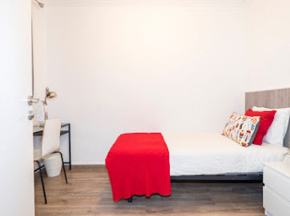 Lovely apartment in Valencia street, modern and recently renovated. It has 7 bedrooms, one of them ensuite, and 2 bathrooms. The apartment is fully furnished and complete with all essential appliances, including wifi, TV, a washing machine and a kitchen equipped with: two refrigerators, a microwave and an oven. The neighbourhood is very quiet and safe, but also very close to the centre and to plenty of supermarkets, shops, restaurants and all you could wish for! This apartment is located in the trendy neighborhood of Eixample, a youthful and progressive area with lots of restaurants, shops, museums, bars, and clubs. It also is LGTB friendly. This apartment is surrounded by many public transportation stations making it easy to travel throughout the city. It is within a 5 minute walk to 2 metro stations and multiple bus stops. Metro Verdaguer (L4) (L5) Metro Girona (L4) Metro Tetuan (L2) Bus Lines: 6, 33, 34, 47, N6, 39, V17, H10 This neighborhood is full of exciting activities to do and is centered around some of Barcelona's most famous sites, including the Arc de Triomf and Parc de la Ciutadella. Around the corner from the apartment is the BCM Art Gallery and there are many Tapas bars and restaurants, so you can experience a piece of Spanish tradition. - Don't smoke - Pets are not allowed - Parties are forbidden - Take out the trash daily - Short-term visits are allowed Lovely room in Calle Valencia, the centre of Barcelona *Lovely single room* in a recently renovated appartment in Valencia street. The room has everything you need for a pleasant stay: single bed (90 cm), individual wardrobe, desk with chair, lamp and window. *bedding is not included (only mattress cover is provided). Please keep in mind that the amount requested in the "other additional costs" field refers to tenant assistance coverage....
