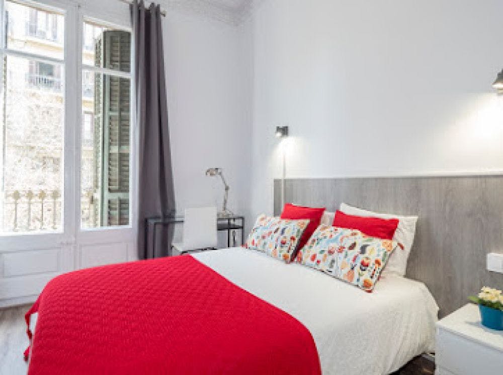 Lovely apartment in Valencia street, modern and recently renovated. It has 7 bedrooms, one of them ensuite, and 2 bathrooms. The apartment is fully furnished and complete with all essential appliances, including wifi, TV, a washing machine and a kitchen equipped with: two refrigerators, a microwave and an oven. The neighbourhood is very quiet and safe, but also very close to the centre and to plenty of supermarkets, shops, restaurants and all you could wish for! This apartment is located in the trendy neighborhood of Eixample, a youthful and progressive area with lots of restaurants, shops, museums, bars, and clubs. It also is LGTB friendly. This apartment is surrounded by many public transportation stations making it easy to travel throughout the city. It is within a 5 minute walk to 2 metro stations and multiple bus stops. Metro Verdaguer (L4) (L5) Metro Girona (L4) Metro Tetuan (L2) Bus Lines: 6, 33, 34, 47, N6, 39, V17, H10 This neighborhood is full of exciting activities to do and is centered around some of Barcelona's most famous sites, including the Arc de Triomf and Parc de la Ciutadella. Around the corner from the apartment is the BCM Art Gallery and there are many Tapas bars and restaurants, so you can experience a piece of Spanish tradition. - Don't smoke - Pets are not allowed - Parties are forbidden - Take out the trash daily - Short-term visits are allowed Bright double room in Calle Valencia, Eixample *Bright double room* in a recently renovated appartment in Valencia street. The room has everything you need for a pleasent stay in Barcelona: double bed (130 cm), private balcony, individual wardrobe, desk with chair, lamp and window. *Bedding is not included (only mattress cover is provided). Please keep in mind that the amount requested in the "other additional costs" field refers to tenant assistance coverage....