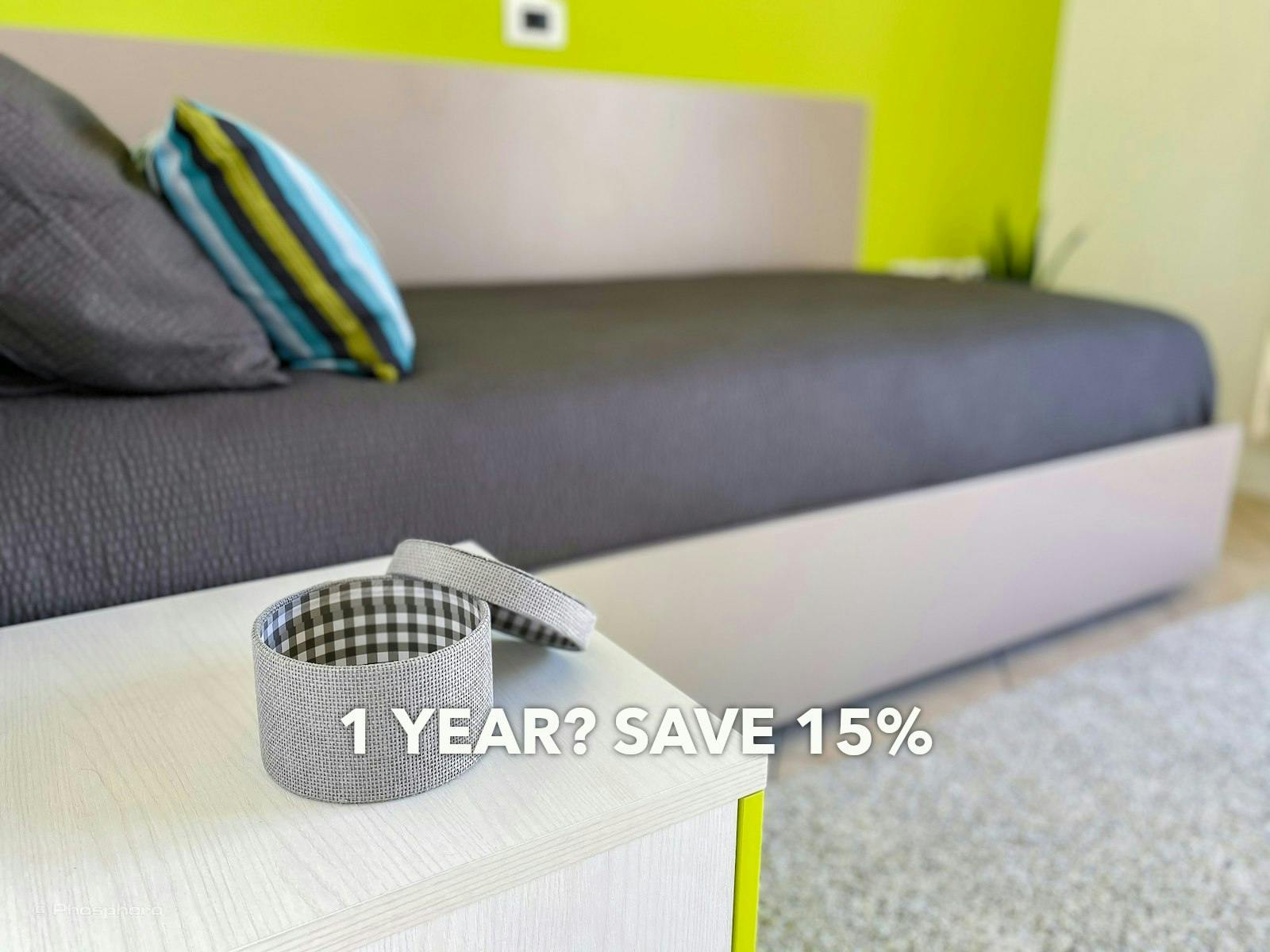 Bright single room 2 steps from the faculties in the PHO. ROOM residence At our company, we love long-term stays! Enjoy significant discounts when you stay with us for 12 months. If you need to stay for less than 12 months but find someone to take over for the remaining period, both of you will benefit from our substantial discounts. Ask for a quote today and start saving! Room: PHO. ROOM is a residence to live in, not just a place to sleep! 40 students, 16 apartments for 3 or 2 tenants, 2 steps from the faculties. This single room with access to the terrace is located in an apartment for 3 and with the possibility of using all the PHO. ROOM services. The welcoming room, characterized by bright colors, has been designed to meet the needs of those who devote many hours to study: it has a large desk with an elegant lamp, a comfortable padded chair for reading in total comfort, a book shelf for store your volumes and a large wardrobe with internal drawers to better organize your clothes. Apartment: Apartment for 3 in the PHO. ROOM student residence. The PHO. ROOM residence offers all its guests the comfort of apartments for 2 or 3 tenants and all the opportunities that a structure exclusively for students can offer both from the point of view of study and socialisation. The common areas are designed to encourage the interaction of children and the creation of collaboration opportunities that are very useful for attending university profitably. The structure has: Cooking Area of 35 m2 with 4 hobs, 2 ovens, 2 microwaves, 2 dishwashers and dining area. Hobby Zone of 35 m2 with 50'' TV, playstation 4, relaxation area: ideal for socializing and having fun in a group. Study Room for 18 people Weekly cleaning service, and repurchase of basic necessities. Wifi in the apartments and common areas Laundry RoomLaundry Room with 4 washing machines, 2 dryers and ironing area. Protected bike space Video surveillance Secure car park (optional) We're a bit old-fashioned and still prefer deposits like the good old days, so we require the deposit payment to be made to the property manager's bank account immediately after completing the reservation process on HousingAnywhere...